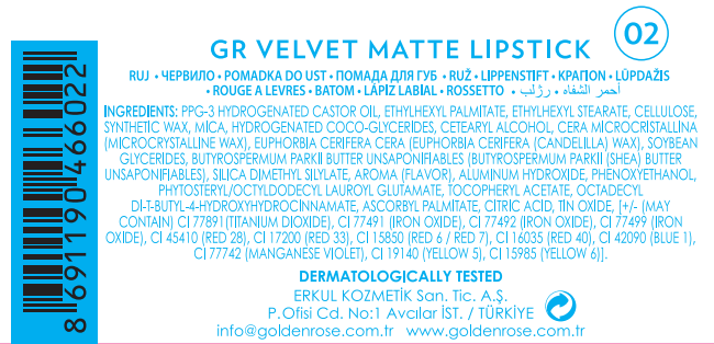 Golden Rose Velvet Mat Ruj No: 02 Etken Maddeleri Nelerdir?