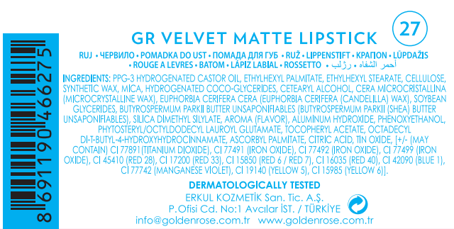ERKUL KOZMETİK SAN. VE TİC. A.Ş. / CİHANGİR MAH. PETROL OFİSİ CAD. NO:1 34310 AVCILAR / İSTANBUL / TÜRKİYE / info@goldenrose.com.tr