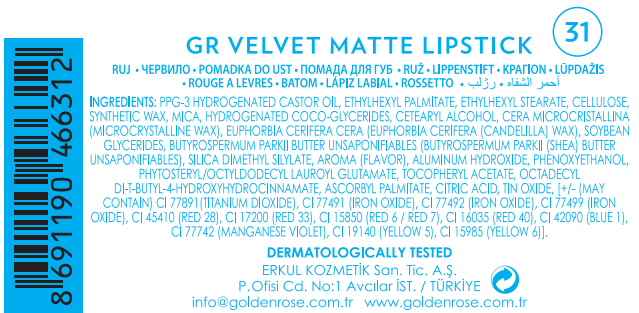 ERKUL KOZMETİK SAN. VE TİC. A.Ş. / CİHANGİR MAH. PETROL OFİSİ CAD. NO:1 34310 AVCILAR / İSTANBUL / TÜRKİYE / info@goldenrose.com.tr