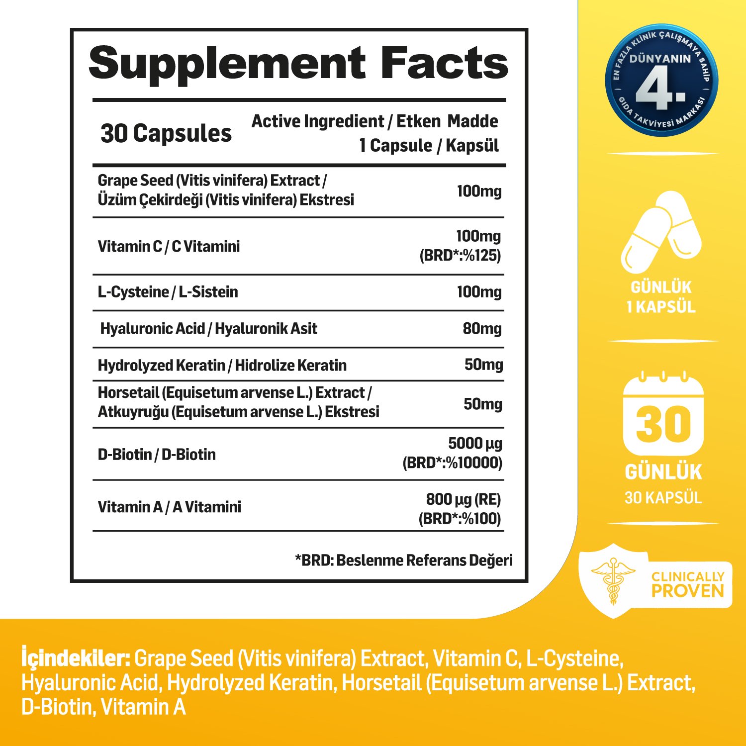 ● Üzüm Çekirdeği Ekstresi – bitkisel kaynaklı takviye bileşeni olarak ürünün kompleks yapısını güçlendirir.