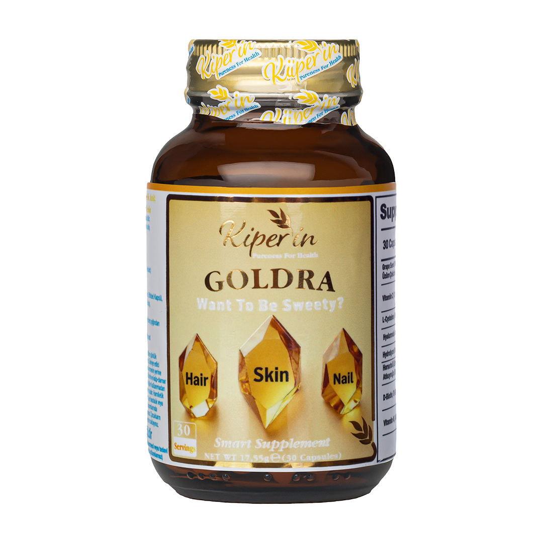 Kiperin Goldra Cilt Saç&Tırnak Kapsül 30'lu, saç, cilt ve tırnak bakımına odaklanan özel bir formülle geliştirilmiştir. İçeriğinde yer alan biotin, keratin, üzüm çekirdeği ekstresi, hyaluronik asit gibi bileşenler sayesinde, dış görünüş ve dokuların desteklenmesine katkı sağlar. Bu bileşenler bir araya gelerek, günlük yoğun tempoda bakım ihtiyacını karşılamak isteyen yetişkinler için kapsamlı bir takviye desteği sağlar.