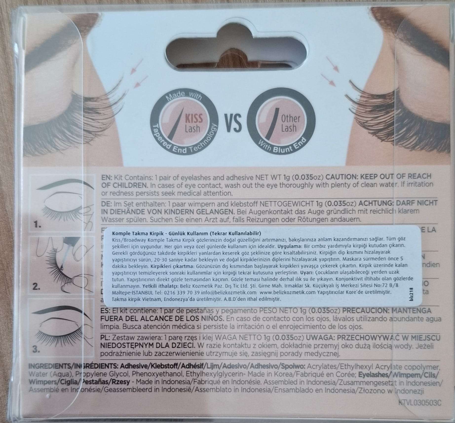 Kutusunun içerisinde takma kirpik ve takma kirpik yapıştırıcı mevcuttur.
