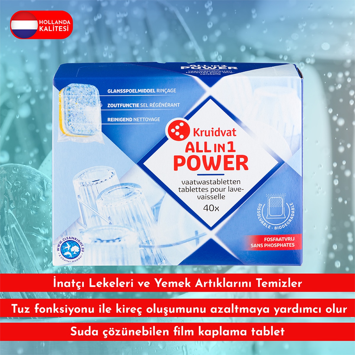 Kruidvat Bulaşık Makinesi Temizleme Tableti 40 Adet