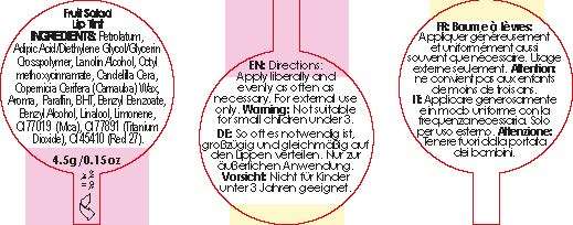 Ingredients: Petrolatum, Adipic Acid/Diethylene Glycol/Glycerin Crosspolymer, Lanolin Alcohol, Octyl methoxycinnamate, Candelilla Cera, Copernicia Cerifera (Carnauba) Wax, Aroma (Flavor), Paraffin, BHT, Benzyl Benzoate, Benzyl Alcohol, Linalool, Limonene, CI 77019 (Mica), CI 77891 (Titanium Dioxide), CI 45410 (Red 27).