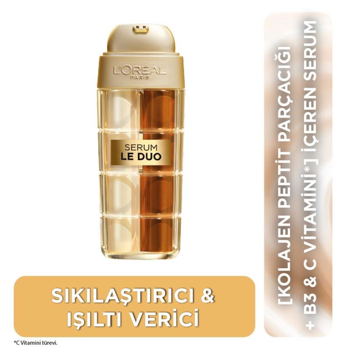 Sıkılaştırıcı ve ışıltı verici etki sunan Le Duo Serum, zamanla değişen cilt ihtiyaçlarına yönelik geliştirilmiştir.