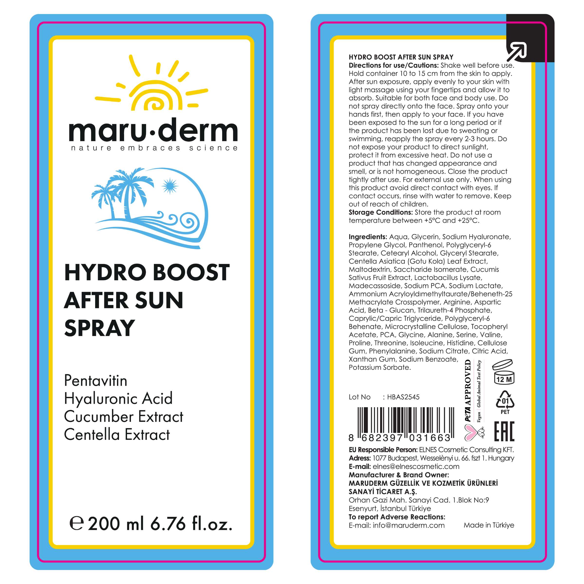 Maruderm Güneş Sonrası Yoğun Nemlendirici ve Onarıcı Sprey 200 ML Etken Maddeleri Nedir?