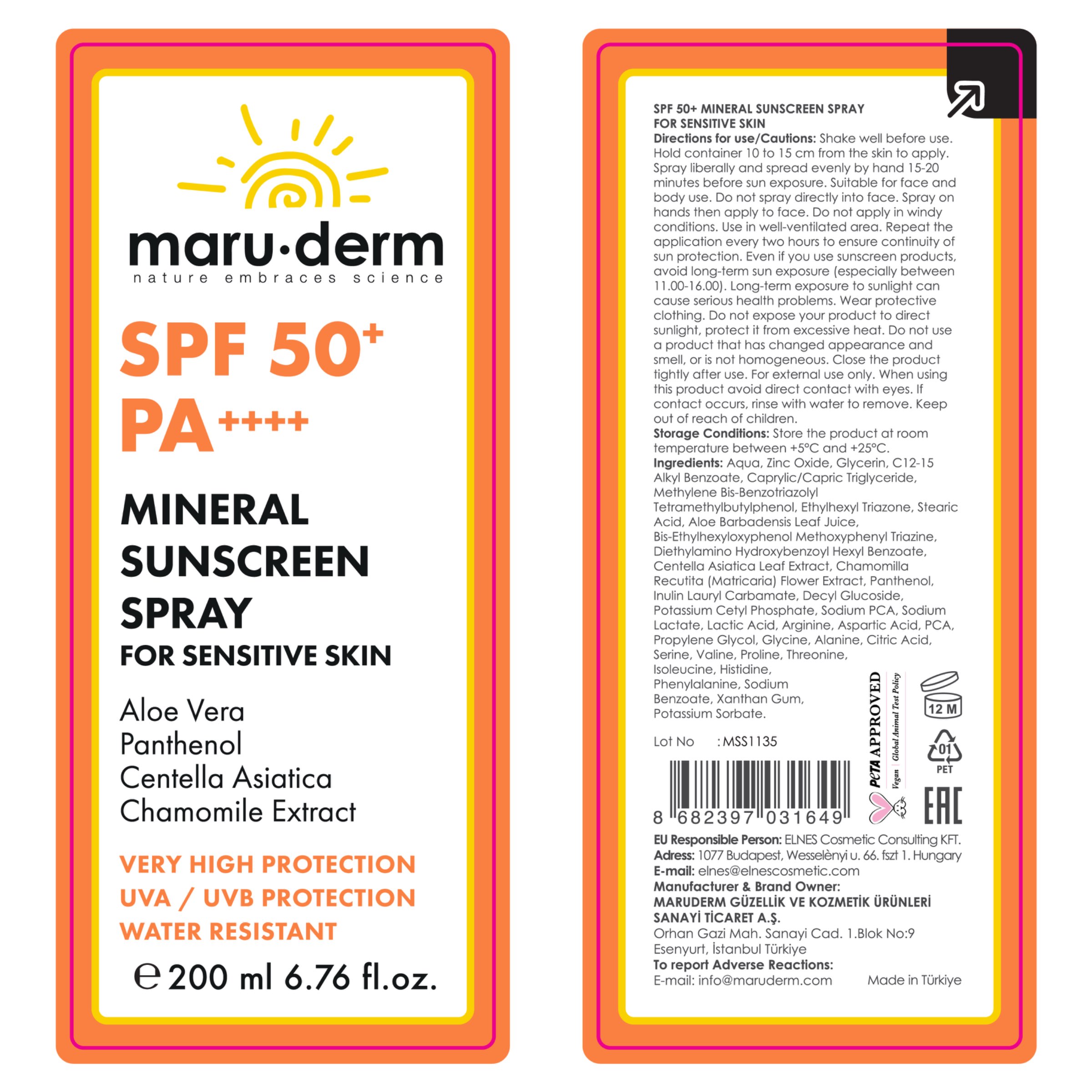 Maruderm Hassas Ciltler İçin SPF 50+ Mineral Sprey Güneş Kremi 200 ML Etken Maddeleri Nelerdir?