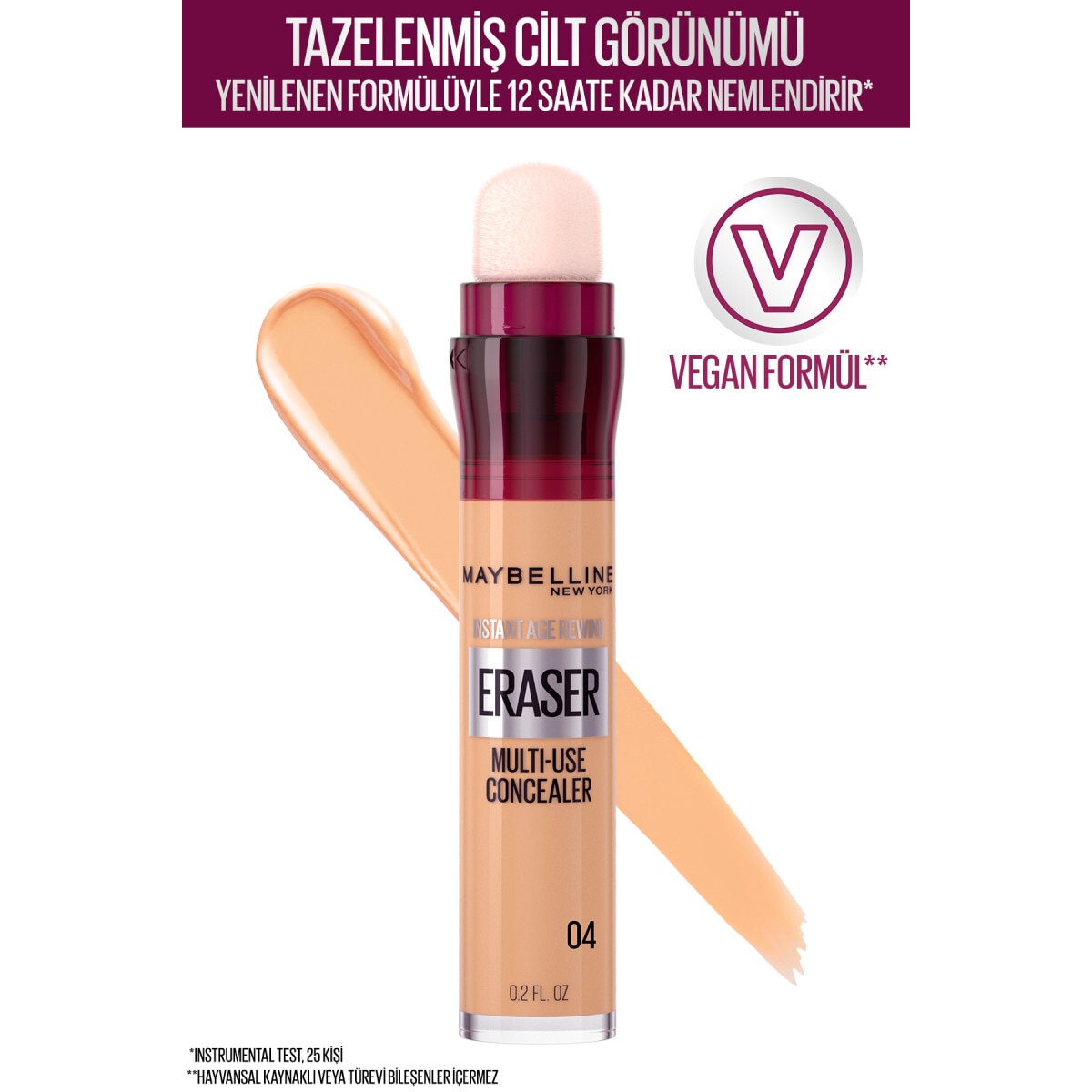 Tek bir ürünle hem kusurlarını kapatıp, hem kontür yapıp hem de aydınlatabilmek, Maybelline New York Instant Anti Age Eraser Kapatıcı ile mümkün! Göz altı şişkinliklerini, göz altındaki ince çizgileri ve koyu halkaları gizlerken, mat ve yorgun hissettiğin günlerde kusurlarını kapatıp tonunu eşitleyerek mükemmel cilt görünümü sağlayacak.Özel formülündeki Goji ile cildi tazeleyen ve ikonik sünger ucuyla kolay uygulanan Instant Anti Age Eraser Kapatıcı, yüksek kapatıcılığıyla her an yanında!
