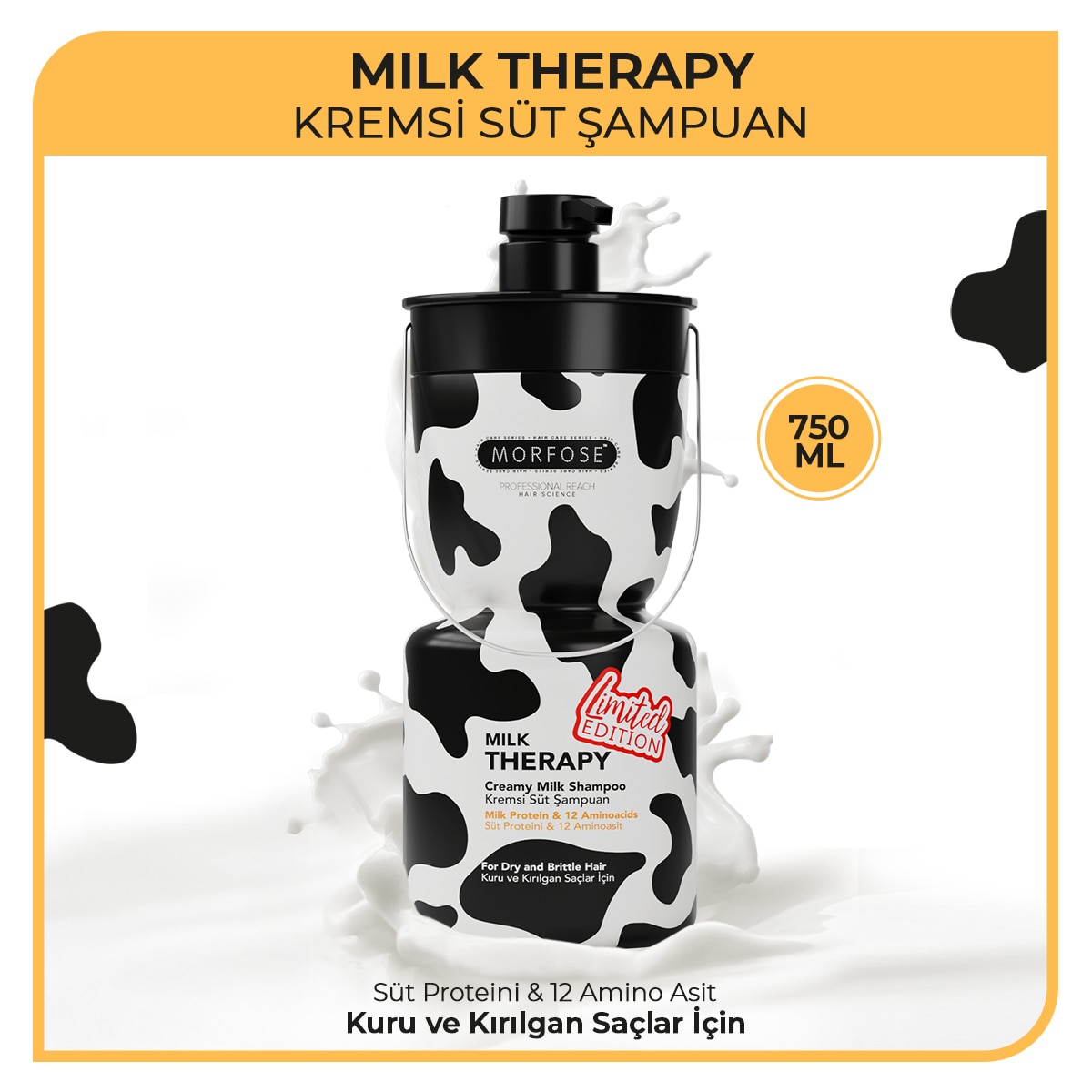 Morfose Milk Therapy Kremsi Süt Şampuan, kremsi süt yapısı sayesinde Süt Proteini ve başlıca 12 Amino Asit içerir. Özel olarak geliştirilmiş formülü sayesinde saçlarınızı temizlerken kökten uca derinlemesine nemlenmesini de destekler.