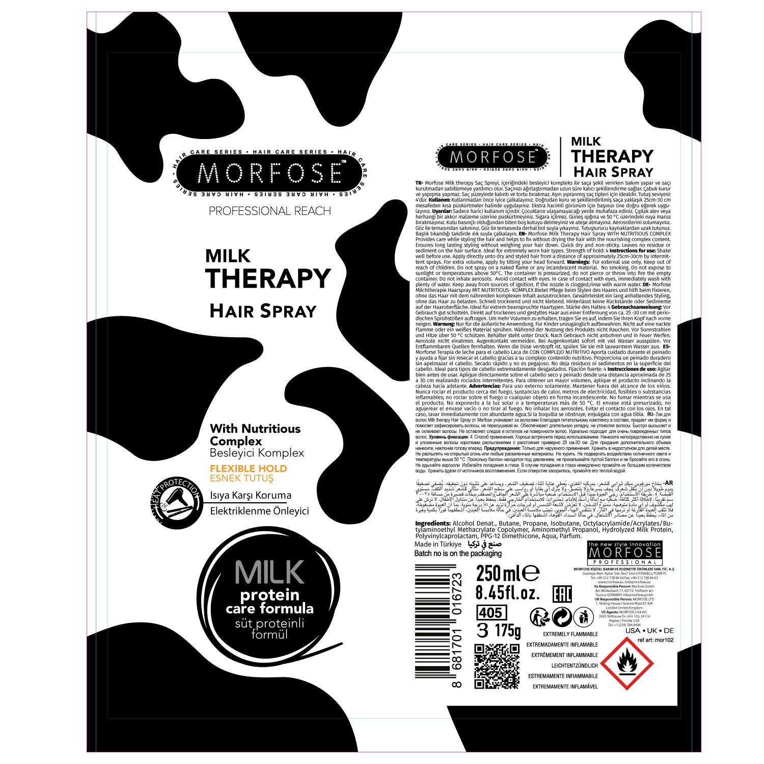 Morfose Milk Therapy Saç Spreyi, içeriğindeki besleyici kompleks ile saça şekil verirken aynı zamanda da bakım yapmanızı sağlar. Saçı beslemeye yardımcı olurken kurutmadan sabitlemenizi destekler. Saçınızı ağırlaşmasını önler, uzun süre kalıcı şekillendirme sağlar. Çabuk kurur ve yapışma yapmaz.