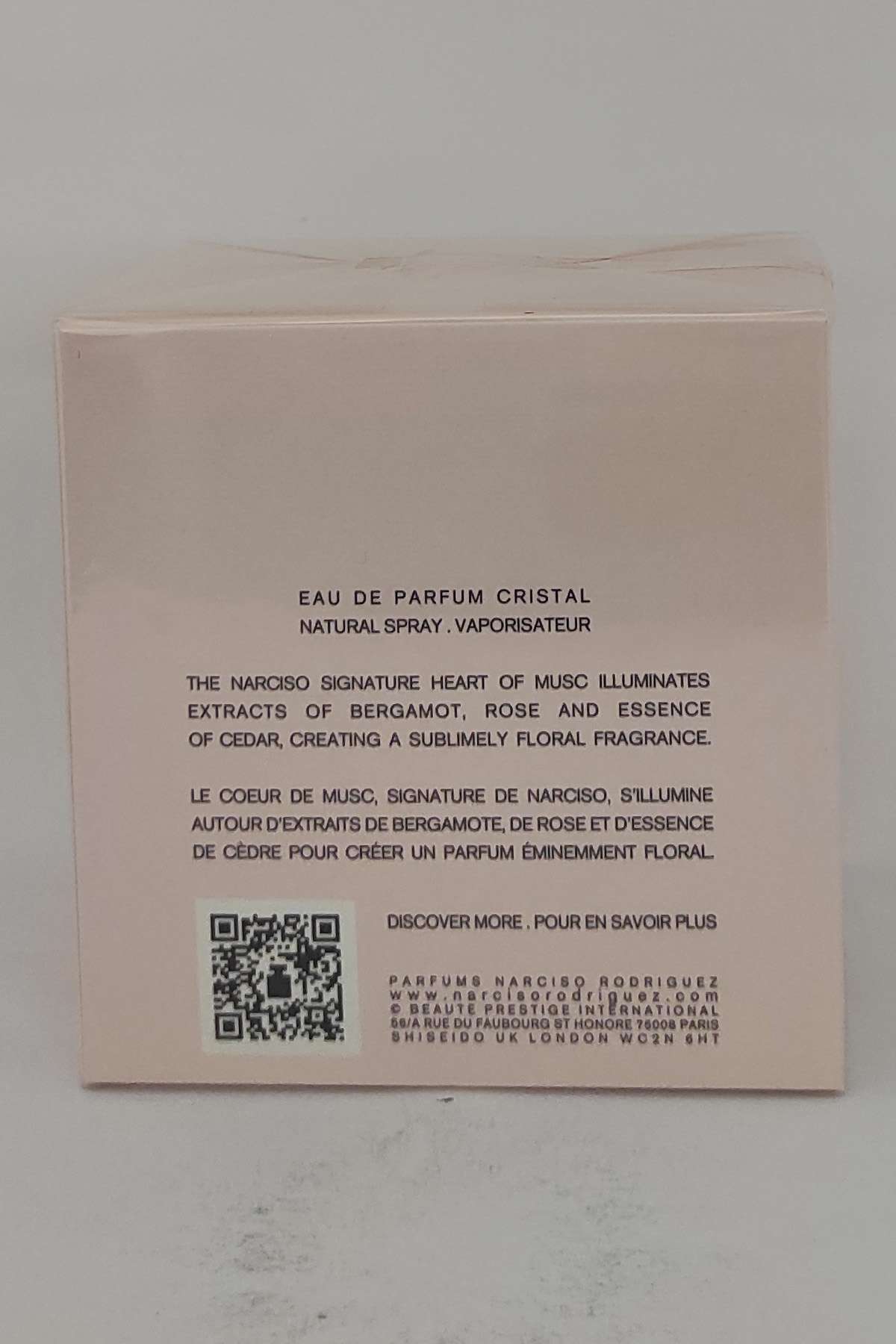 Narciso Rodriguez Cristal, şeffaf ve zarif şişe tasarımıyla dikkat çeker. Kristal görünümlü ambalajı, parfümün içsel ışıltısını yansıtır ve hediye olarak da oldukça etkileyicidir.