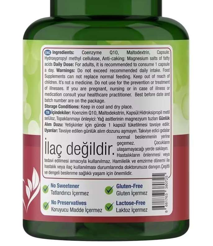 - Servis başına 100 mg koenzim Q10