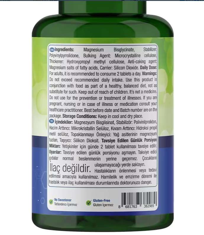 Sektöre kazandırdığı yenilikçi takviye ürünleri sayesinde her segmentten insana ulaşan Nature’s Supreme markası, ürünleri ile sektörde adından söz ettirmeye devam ediyor. Nature's Supreme Magnesium Bisglycinate ürününün formülünde bulunan magnezyum glisinat (bisglisinat), glisin amino asidi ile bağlı magnezyum olarak açıklanabilir. Bu bileşenin tolerans seviyesi oldukça yüksektir ve böylelikle emilim daha kolay gerçekleşebilir. Nature's Supreme Magnesium Bisglycinate, yüksek oranda emilebilir özelliktedir ve midede diğer formlardan daha nazik olan şelatlı, tamponlu bir magnezyum şeklidir. Bu takviye, her servisinde 240 mg magnezyum desteği sunar.