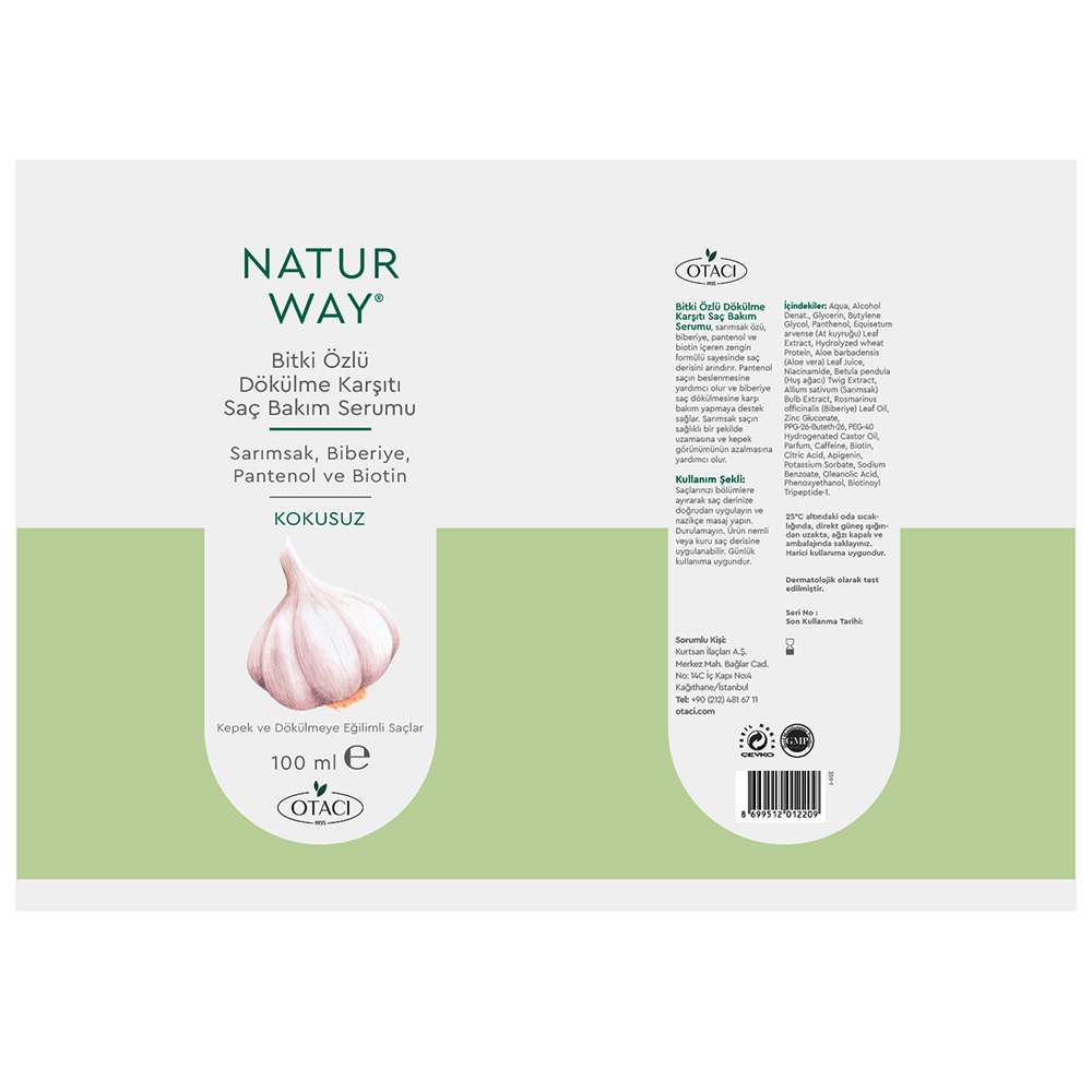 Sarımsak özü, biberiye, pantenol ve biotin içeren özel formülü ile saç derisini yatıştırmaya, kepek görünümünü azaltmaya ve dökülme karşıtı bakım sağlamaya yardımcı olur.