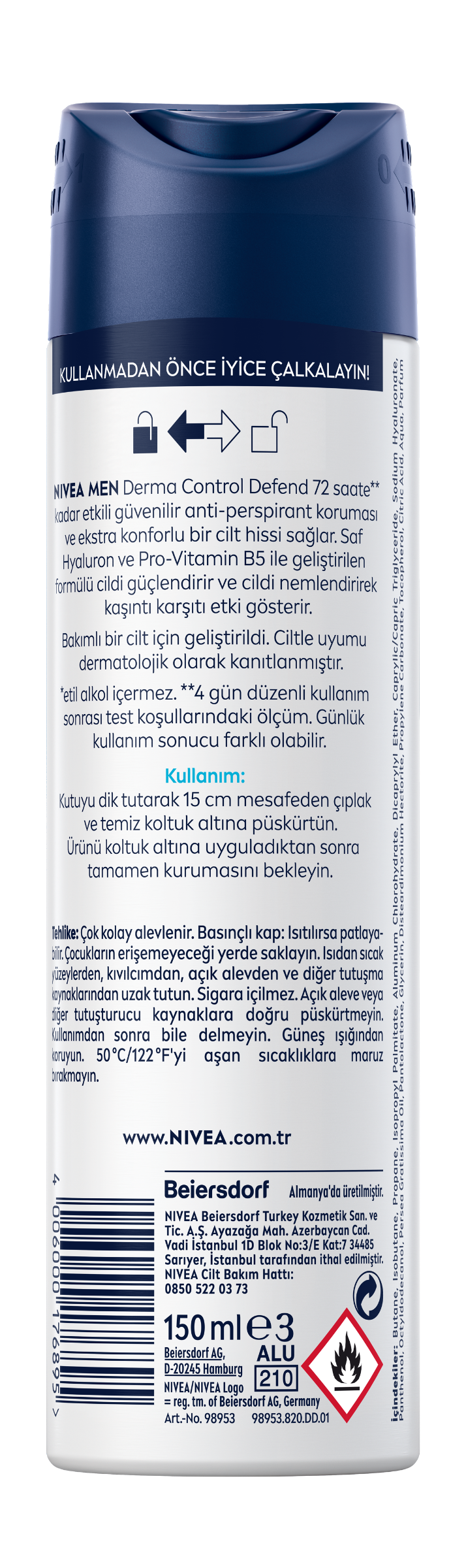 NIVEA Beiersdorf Turkey Kozmetik San. ve Tic. A.Ş, Ayazağa Mah. Azerbaycan Cad. Vadi İstanbul 1D Blok No:3/E Kat:7 34485 Sarıyer, İstanbul tarafından ithal edilmiştir. AB'de üretilmiştir. www.NIVEA.com.trNIVEA Cilt Bakım Hattı: 0850 522 0373