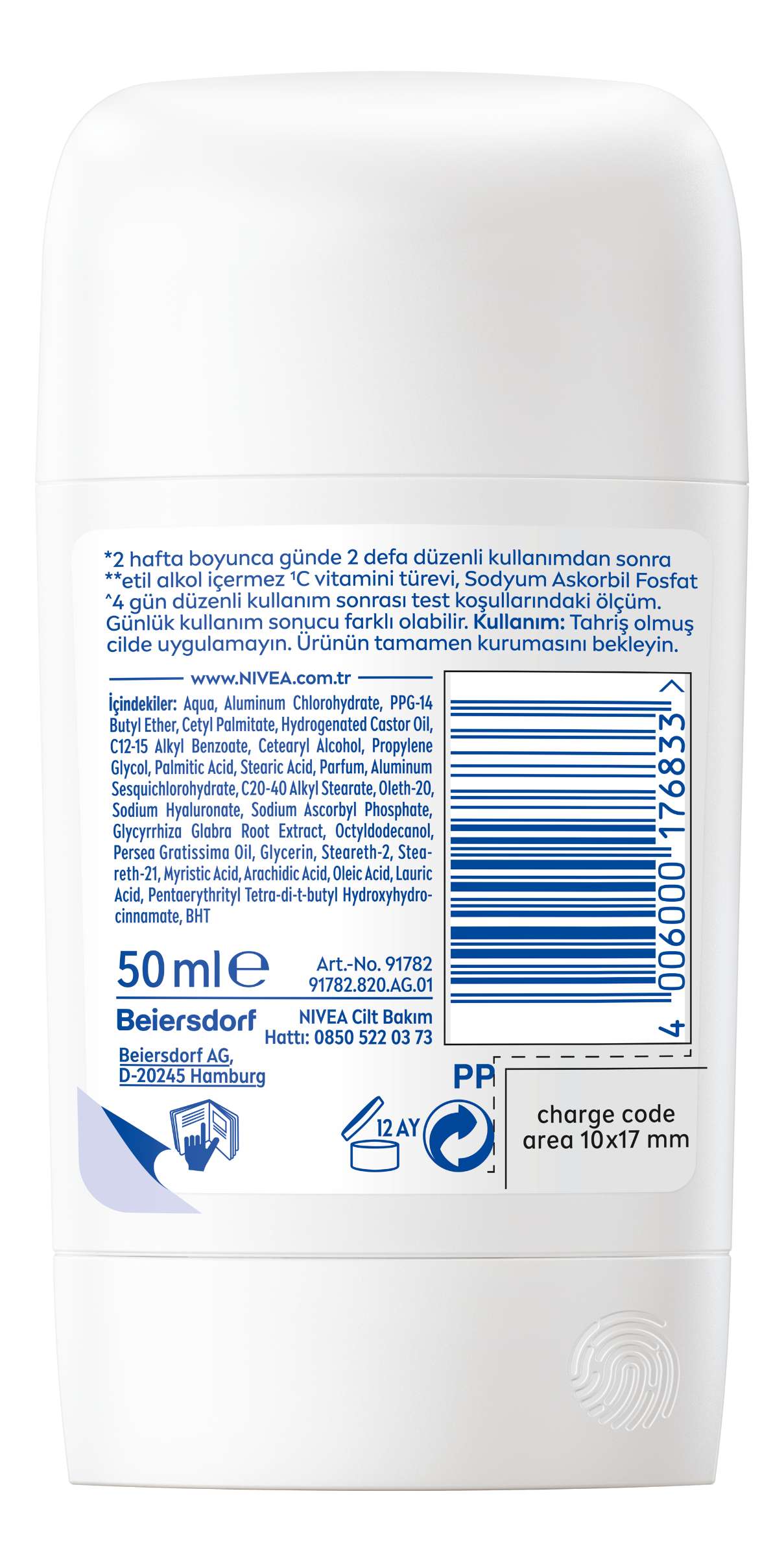 NIVEA Beiersdorf Turkey Kozmetik San. ve Tic. A.Ş, Ayazağa Mah. Azerbaycan Cad. Vadi İstanbul 1D Blok No:3/E Kat:7 34485 Sarıyer, İstanbul tarafından ithal edilmiştir. AB'de üretilmiştir. www.NIVEA.com.trNIVEA Cilt Bakım Hattı: 0850 522 0373