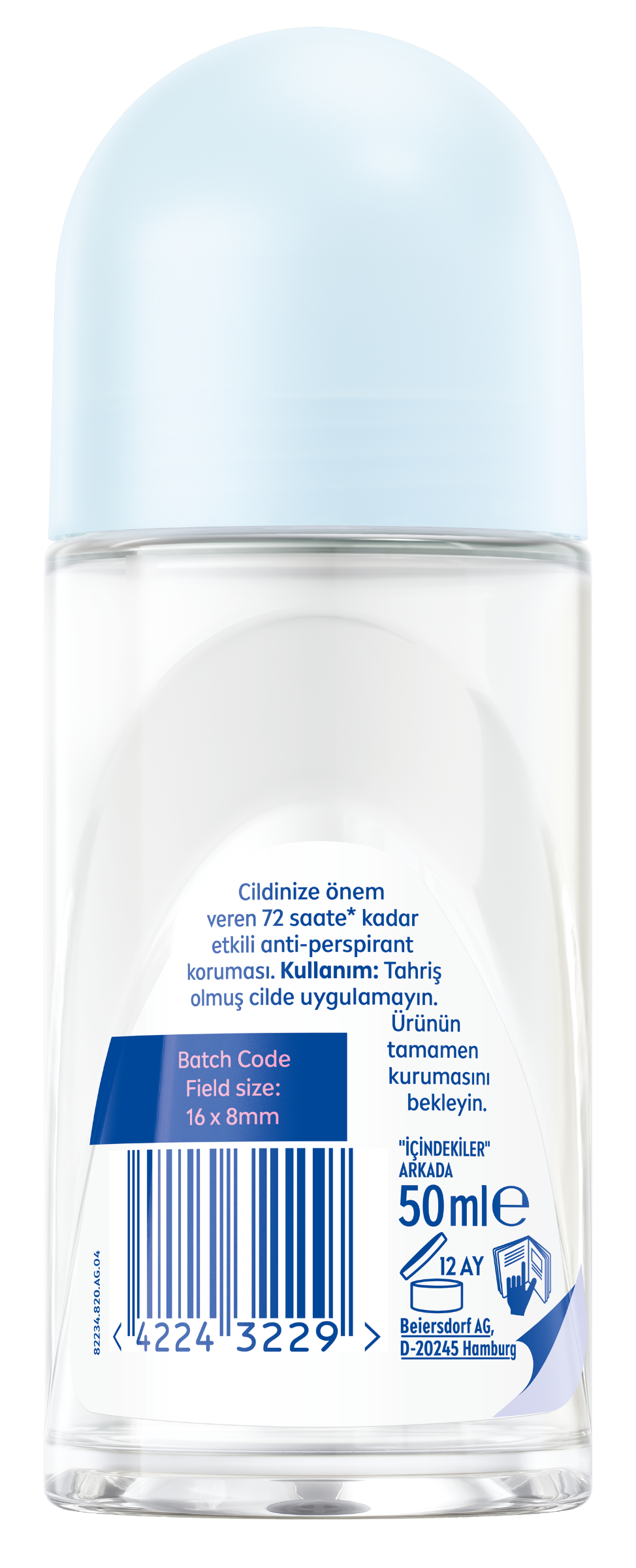 48 Saat anti-perspirant koruma: NIVEA Kadın roll on Deodorant Black&White Invisible Pure, cildinize önem veren 48 saate kadar etkili anti-perspirant koruma sağlar.