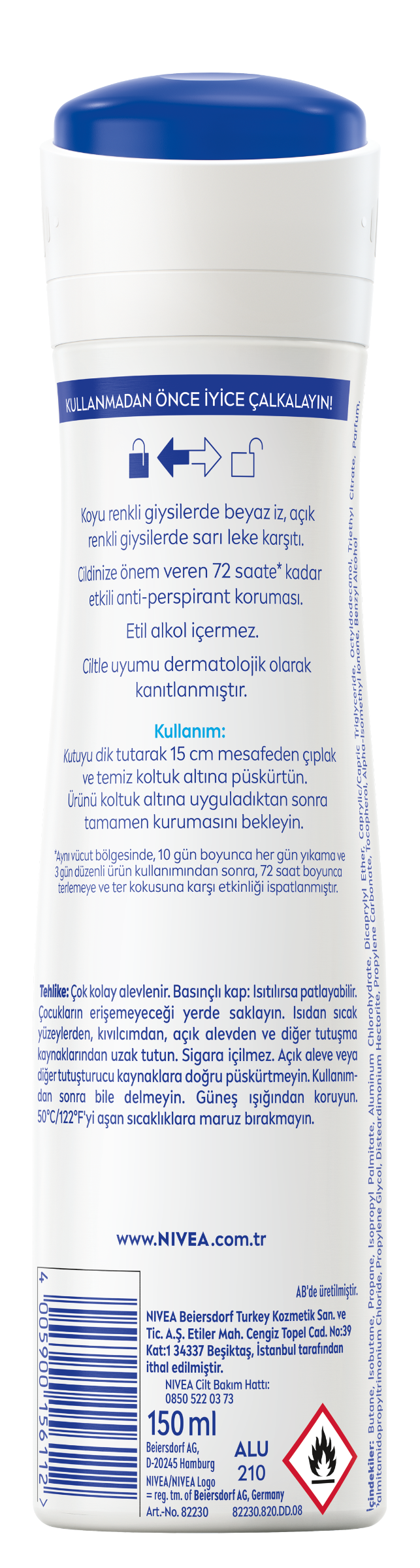 NIVEA Beiersdorf Turkey Kozmetik San. ve Tic. A.Ş, Ayazağa Mah. Azerbaycan Cad. Vadi İstanbul 1D Blok No:3/E Kat:7 34485 Sarıyer, İstanbul tarafından ithal edilmiştir. AB'de üretilmiştir. www.NIVEA.com.trNIVEA Cilt Bakım Hattı: 0850 522 0373