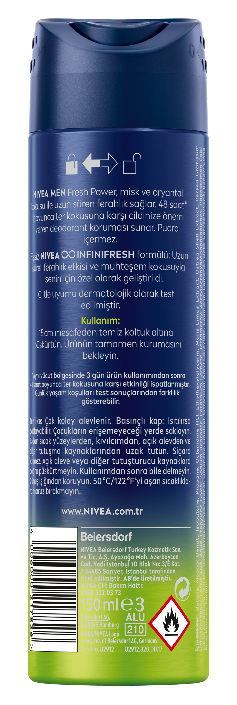 Türkiye'nin Lider Deodorant markası NIVEA'dan NIVEA MEN erkek sprey deodorant Fresh Power 150 ml ile uzun süren ferahlık!
