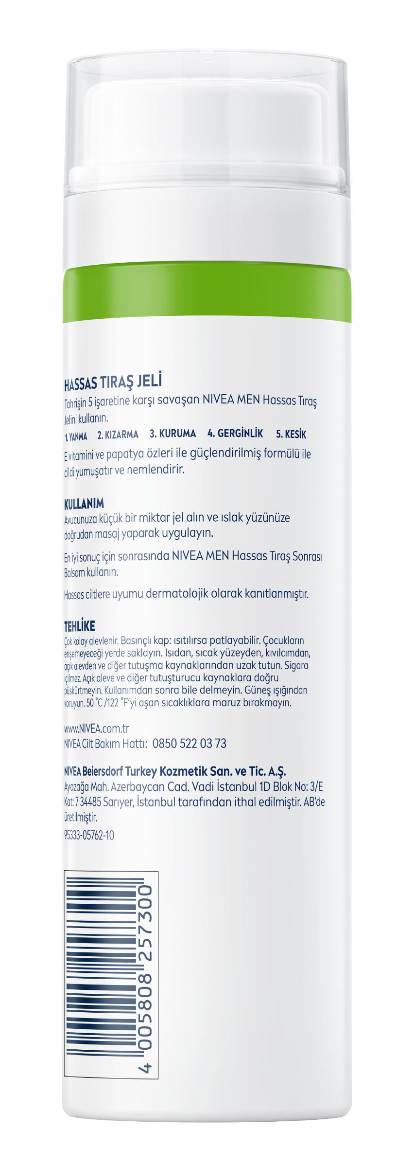 NIVEA Men Erkek Hassas tıraş jeli, tıraştan sonra gerilen ve tahriş olan hassas erkek ciltleri içindir. Ultra Glide Technology sayesinde yakın ve kaygan tıraş sağlar.Tahrişin 5 etkisine karşı savaşır: Yanma, Kızarma, Kuruma, Gerginlik, Kesik. Tıraştan önce cilde bakım yapar. %0 Alkol, yanma karşıtı formüle sahiptir.Yakın ve rahat tıraş için sakalı yumuşatır. Papatya özleri ve E vitamini içeren alkolsüz formülü sayesinde cildi yatıştırmaya yardımcı olur.