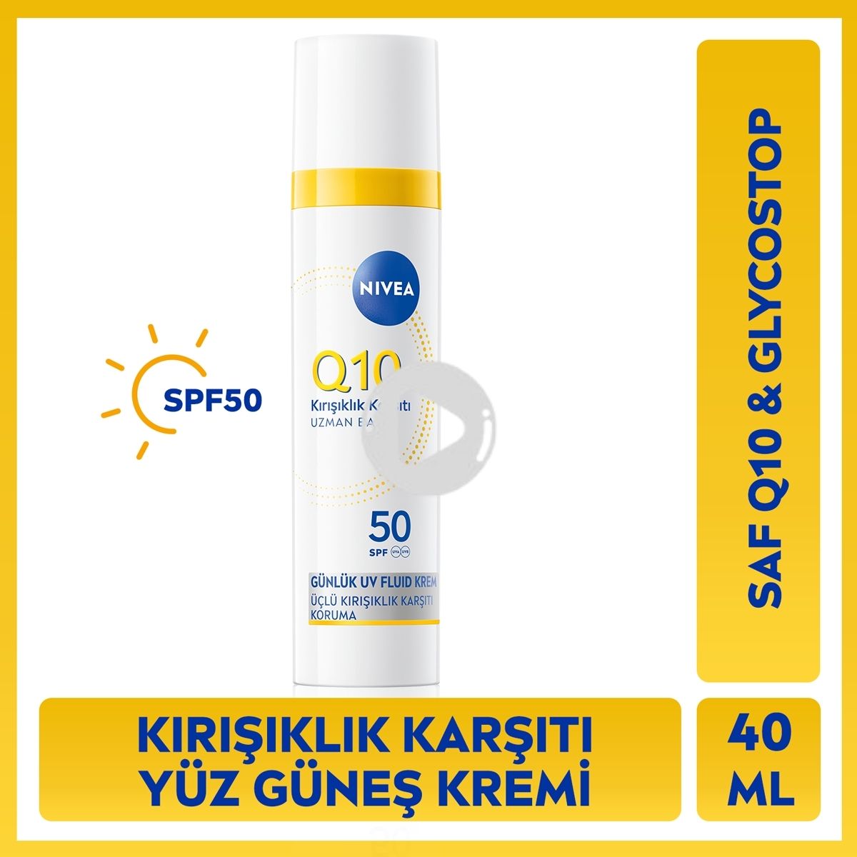NIVEA Q10 SPF50 Gündüz Yüz Bakım Kremi, UV ışınlarına karşı koruma sağlar.