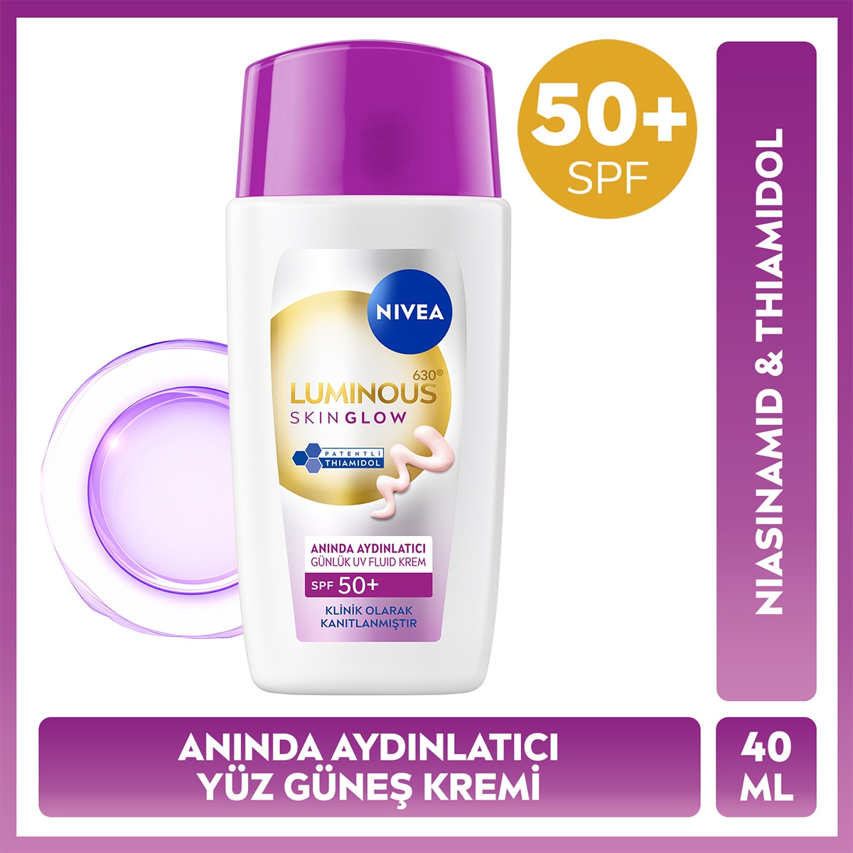 Nivea SPF50 Luminous630 Skin Glow Aydınlatıcı Yüz Güneş Kremi 40 ml: Thiamidol ve Niasinamid içerir.