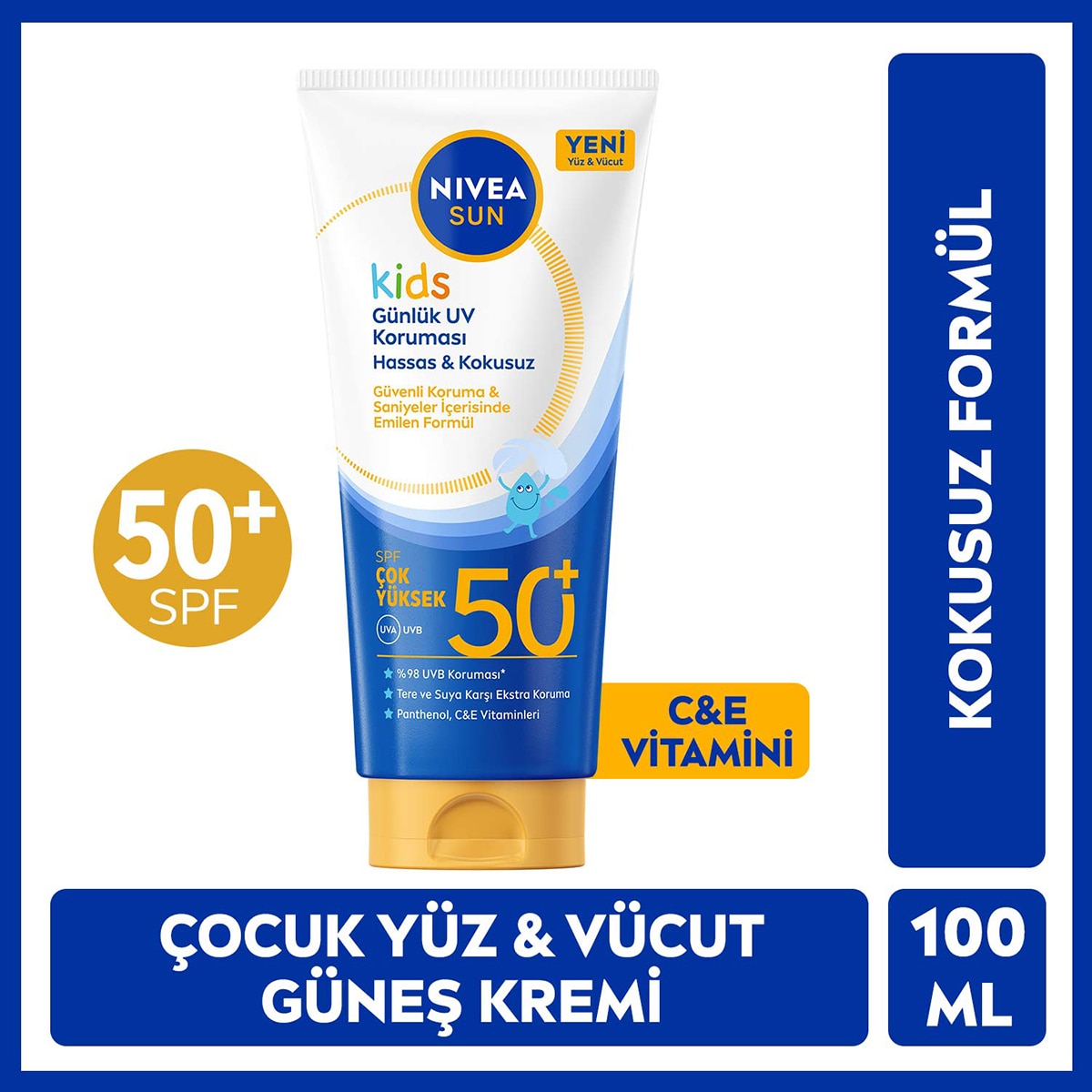 Nivea Sun SPF50 Çocuklar İçin Yüksek Güneş Korumalı Yüz ve Vücut Güneş Kremi 100 ml İçerik