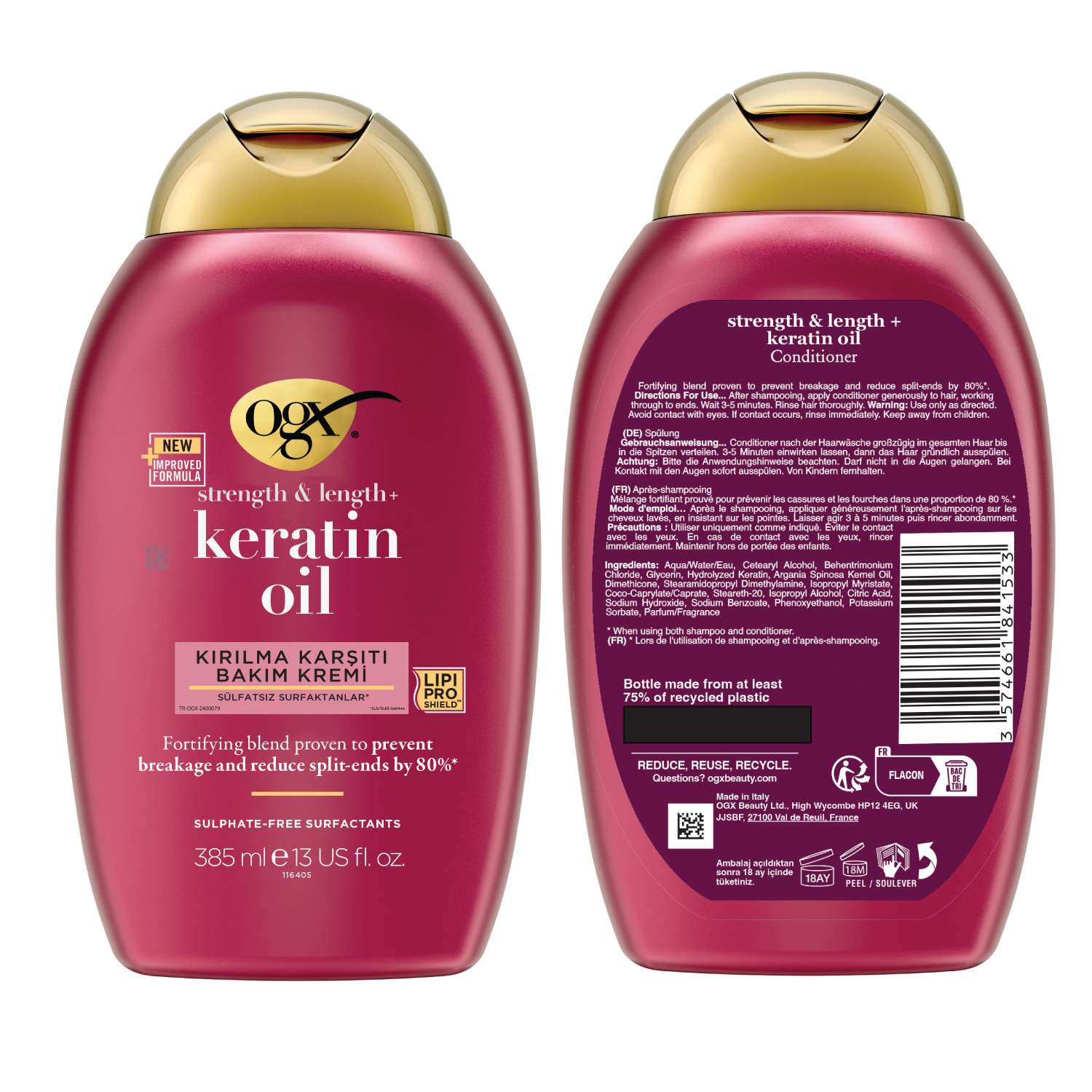 OGX Keratin Oil Bakım Kremi, kırılmalara karşı keratin proteinleri ve argan yağı içeren formülü ile saç tellerinizi güçlendirir, saçlarınızın parlaklığını arttırır, tarama ve şekillendirme sırasında oluşan kırılmalara karşı saçlarınızı korur. Sülfat içermeyen OGX Keratin Oil Bakım Kremi kökten uca güçlenen saçlarınızın kırılmadan uzamasına yardımcı olur.