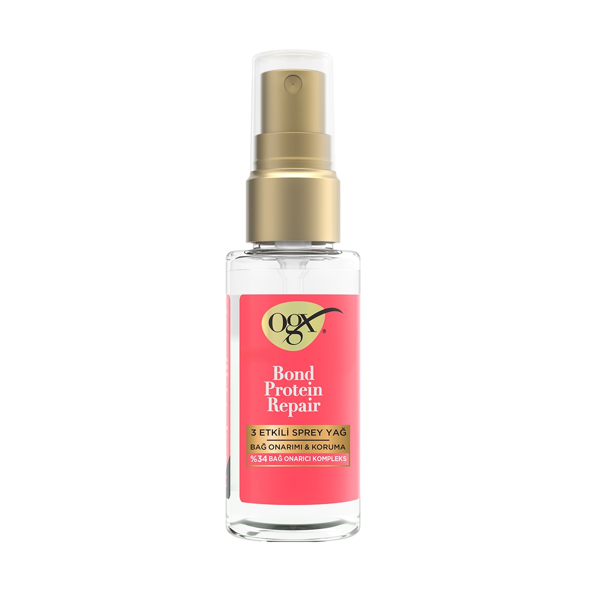 OGX Bond Protein Repair 3 Etkili Sprey Yağ, saçınıza ışıltı katmaya, elektriklenmeyi kontrol altına almaya ve saç tellerini güçlendirmeye yardımcı olur. 24 saat boyunca kuru ve yıpranmış saçları korur, pürüzsüzleştirir ve sağlıklı bir parlaklık sağlar. Çift etkili bağ onarım teknolojisi sayesinde saç kırılmalarını önlemeye destek olur, daha sağlıklı ve dayanıklı bir görünüm kazandırır