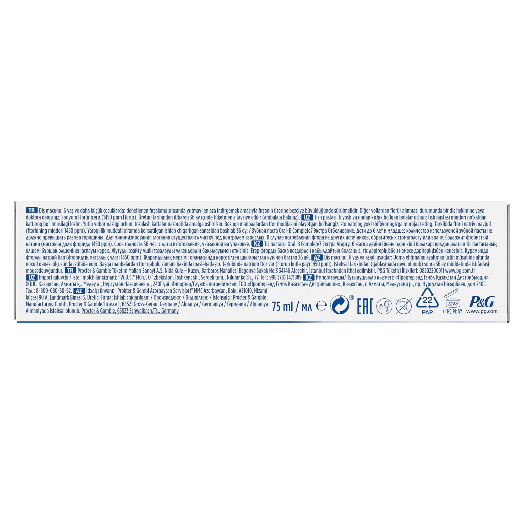 Procter & Gamble Tüketim Malları Sanayi A.Ş Nidakule Kuzey ,Barbaros Mahallesi Begonya Sokak No:3 34746 Ataşehir /İstanbul P&G Tüeketici İlişkileri : 0850 220 09 11 www.pg.com.tr