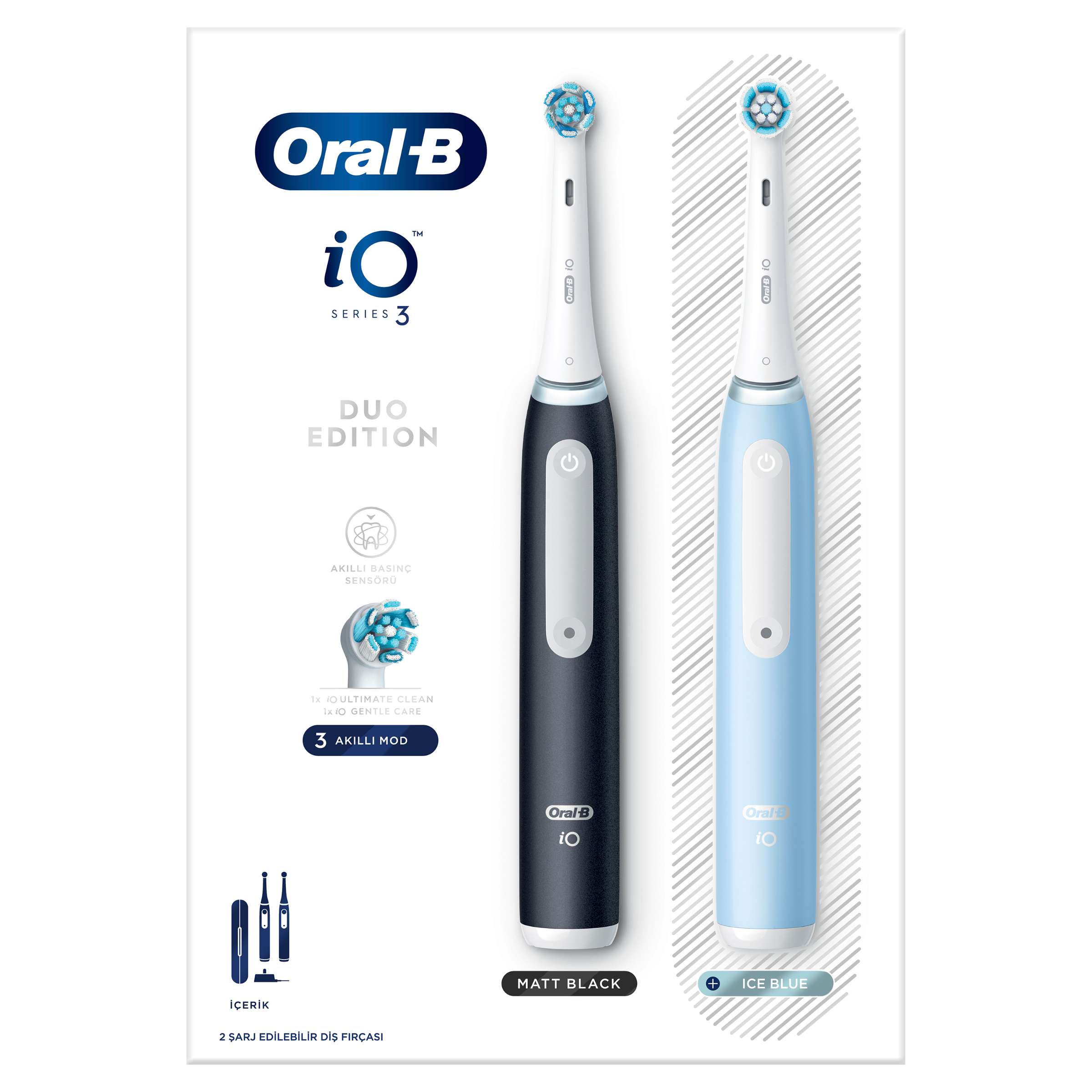 Oral-B’nin en iyi teknolojisine sahip olan iO 3 elektrikli diş fırçası, evde profesyonel bir temizlik hissi için diş hekimlerinden ilham alan yuvarlak fırça başlığını mikro titreşimli fırça kıllarıyla birleştirir. Akıllı Basınç Sensörü diş etlerinizi daha iyi korumak için dişlerinizi fazla sert veya fazla yumuşak fırçalamanızı engeller. Diş Eti Koruyucu, diş fırçalarken çok fazla basınç uyguladığınız zaman sizi uyarır. En iyi sonuç için Oral-B iO diş fırçası başlığınızı 3 ayda bir değiştirin.
