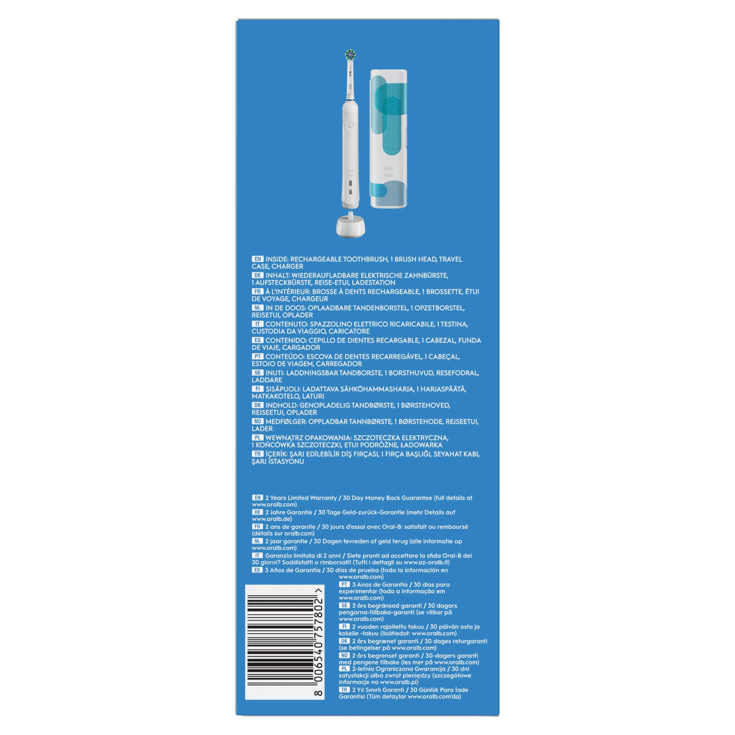 İçindekiler: 1 gövde, 1 diş fırçası başlığı, 1 diş fırçası şarj cihazı, 1 ücretsiz seyahat çantası