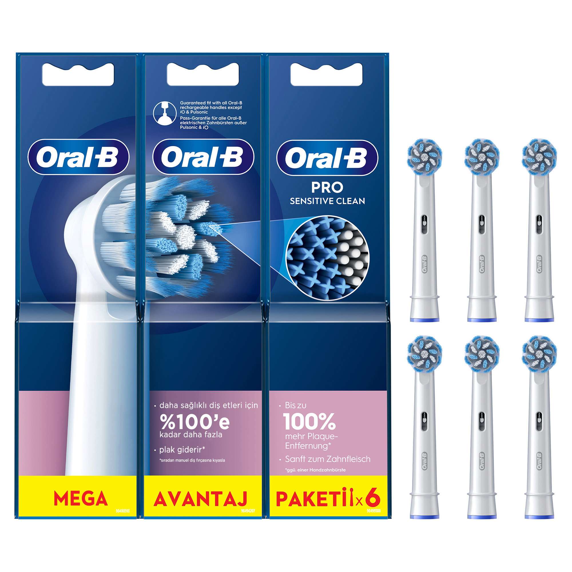 Oral-B’nin premium yedek diş fırçası başlıklarından biri olarak, diş etlerine hassas ultra ince fırça kıllarının yanı sıra, plak gideren normal fırça kıllarına sahiptir. Sensitive Clean, manuel diş fırçasına göre %100’e kadar daha fazla plak giderir ve diş eti tahrişini azaltmaya yardımcı olur. Uçları yuvarlatılmış ve ultra ince kılların benzersiz bileşimi sayesinde Sensitive Clean hassas dişleri olanlar ve sadece harika nazik temizlik sonucu arayanlar için idealdir. Pulsonic ve iO hariç tüm Oral-B gövdeleri ile uyumludur. Hassas temizlik ve daha sağlıklı diş etleri için Oral-B’nin en iyisi (Pulsonic ve iO hariç). Diş Hekimleri Fırça Başlığınızı 3 Ayda 1 Değiştirmenizi Öneriyor. Dünya çapında diş hekimlerinin önerdiği 1 numaralı markadan. Bu pakette yer alan diş fırçası başlıklarının sayısı: 6