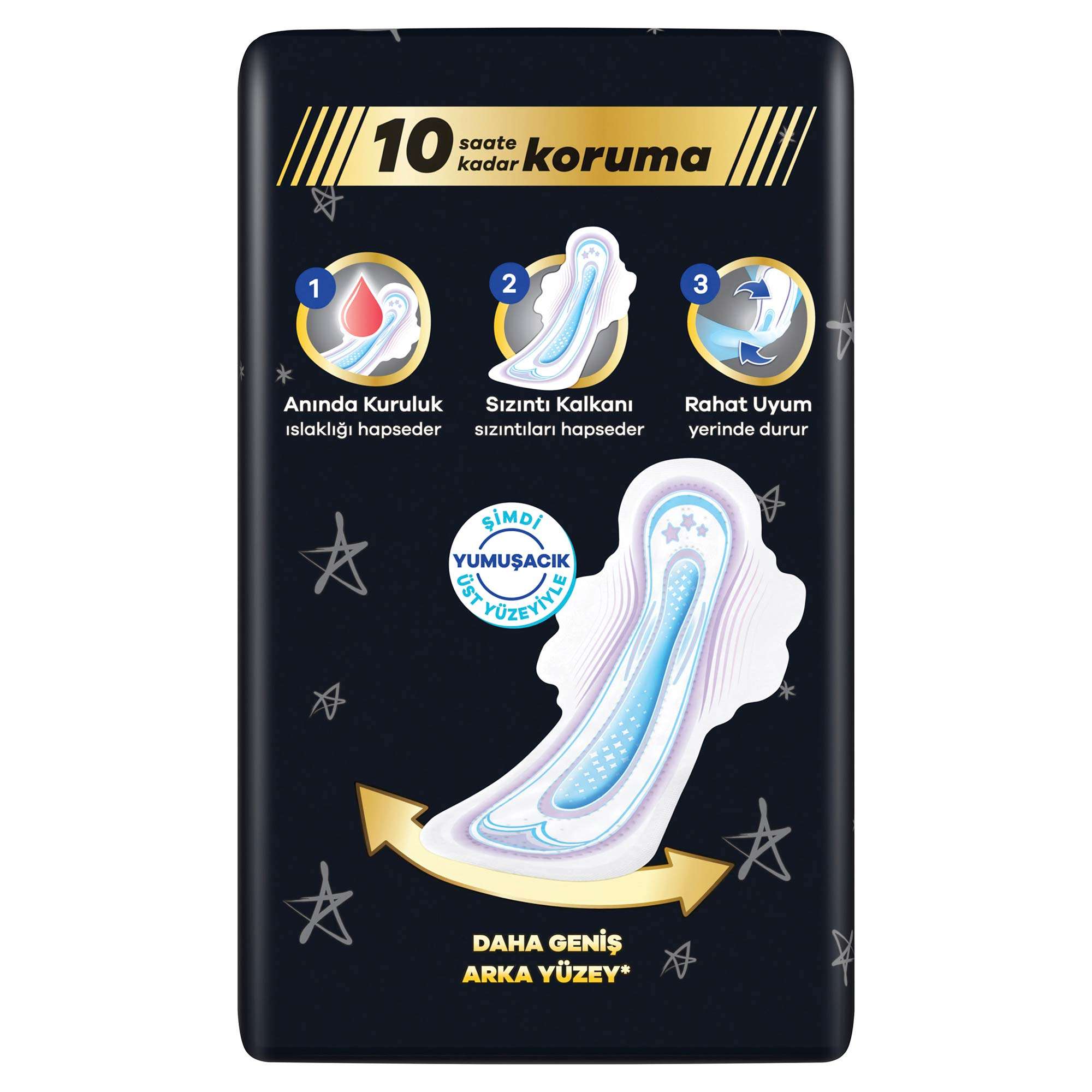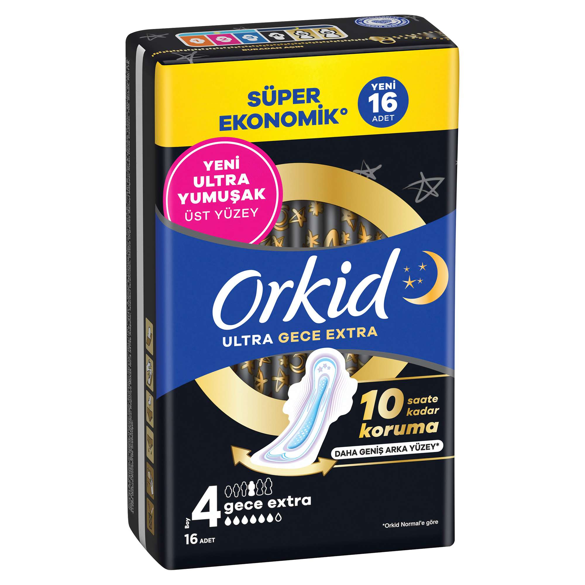 10 saate kadar koruma ile iyi bir gece uykusundan daha azına razı olmayın: Kanatlı Orkid Ultra Gece Extra (boy 4) hijyenik pedler, gece boyu sızıntı olup olmadığını görmek veya pedinizi değiştirmek için uyanmanıza gerek bırakmayan, 3 adet koruma özelliği ile tasarlanmıştır. (Orkid Ultra Normal Boy 1’e kıyasla) %60 daha büyük arka kısım ile birlikte Orkid’in LeakGuard teknolojisi adet dönemi gecelerinde sıvıyı hapseder ve sızıntıları önlemeye yardımcı olur. InstantDry sistemi, sıvıyı saniyeler içinde emer ve ıslaklığı cildinizden uzak tutar. Ayrıca, uyku pozisyonunuz ne olursa olsun, pedinizin yerinde kalması için tasarlanan ComfortFit Sistemi’ne sahiptir. Rahat uyuyun: Orkid Ultra 3 kat koruma ile içinizi rahat tutar.