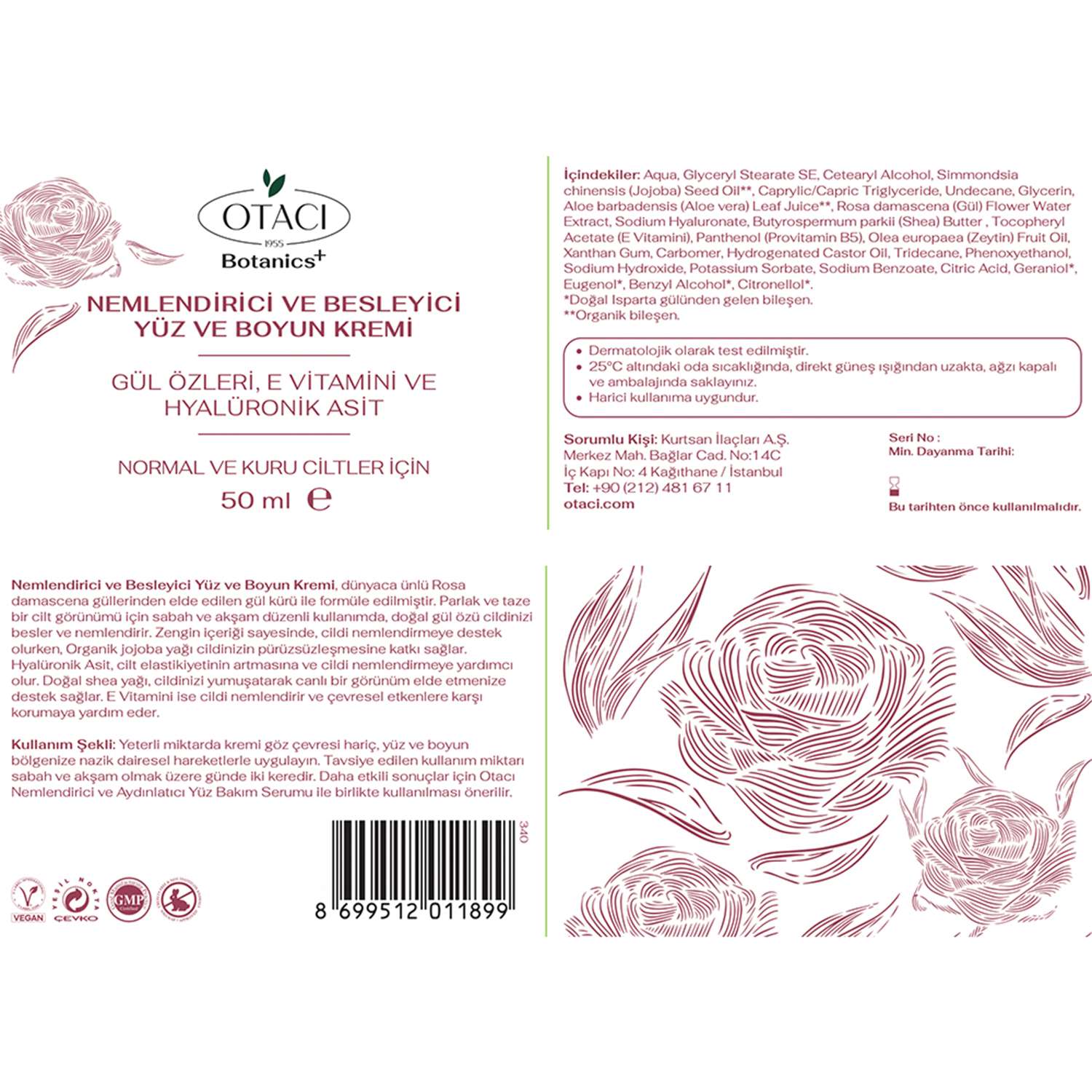 Otacı Botanics+ Nemlendirici Yüz ve Boyun Kremi - Gül Özleri , E Vitamini ve Hyalüronik Asit 50 ml Anında Etki, Kalıcı Güzellik!