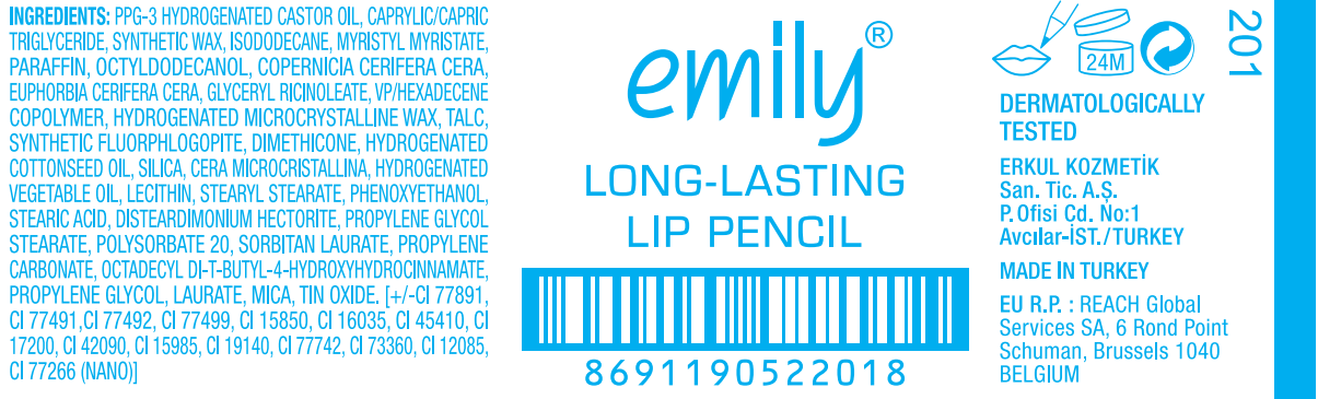 Emily Dudak Kalemi yoğun pigmentli yumuşak yapıda mat bitişli bir dudak kalemi çeşididir.