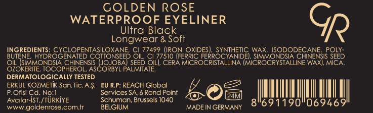 Golden Rose Waterproof Göz Kalemi Longwear Soft Koyu siyah rengi ile göz makyajınızı kusursuz bir şekilde tamamlar.