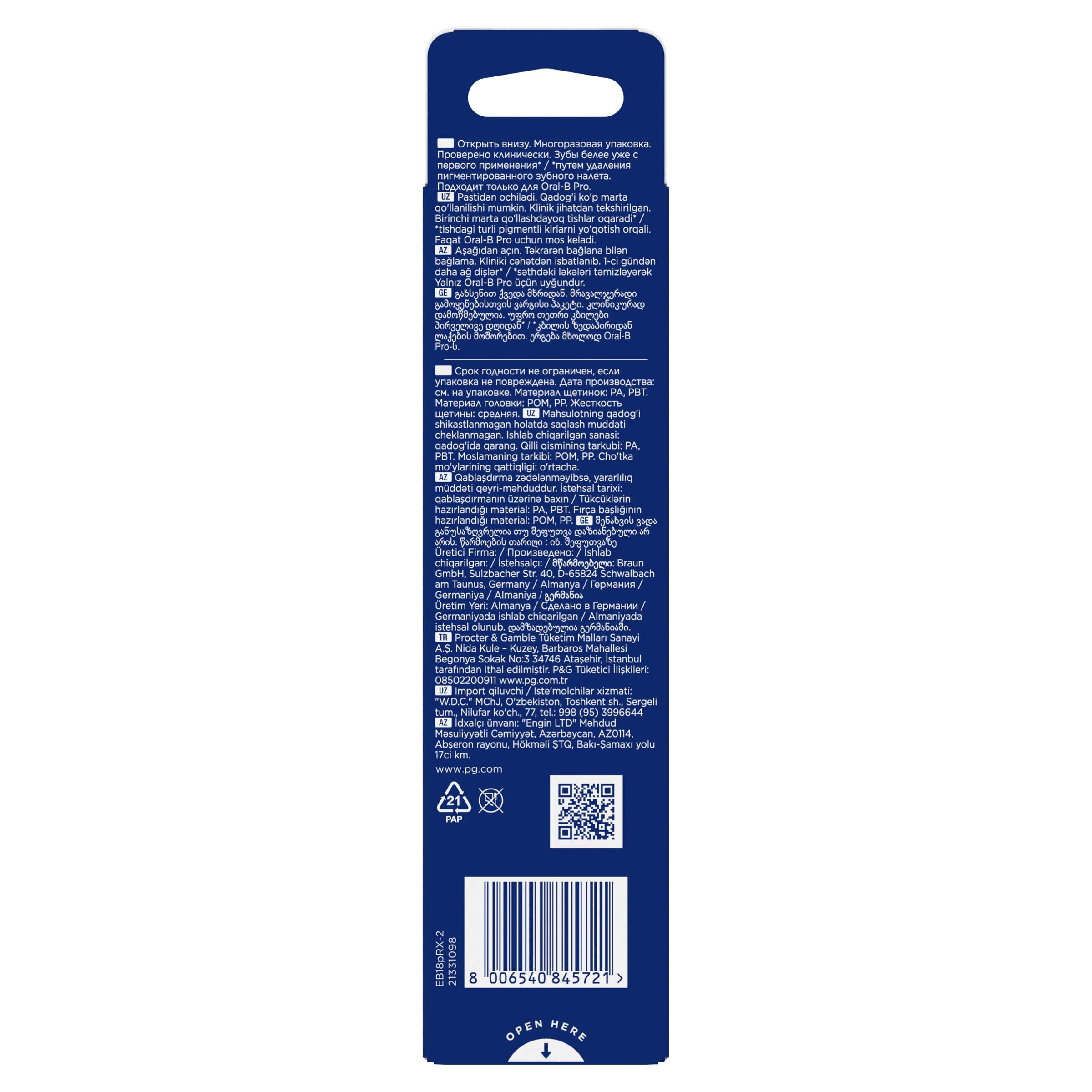 Diş hekimleri, dişlerinizi %100 temizleme etkisi için fırça başlığınızın üç ayda bir değiştirilmesini önerir. Oral-B şarjlı fırça başlıkları fırça kılı kullanım göstergesi teknolojisiyle diş hekimlerinin tavsiyesini destekler. Bu pakette yer alan diş fırçası başlıklarının sayısı: 2