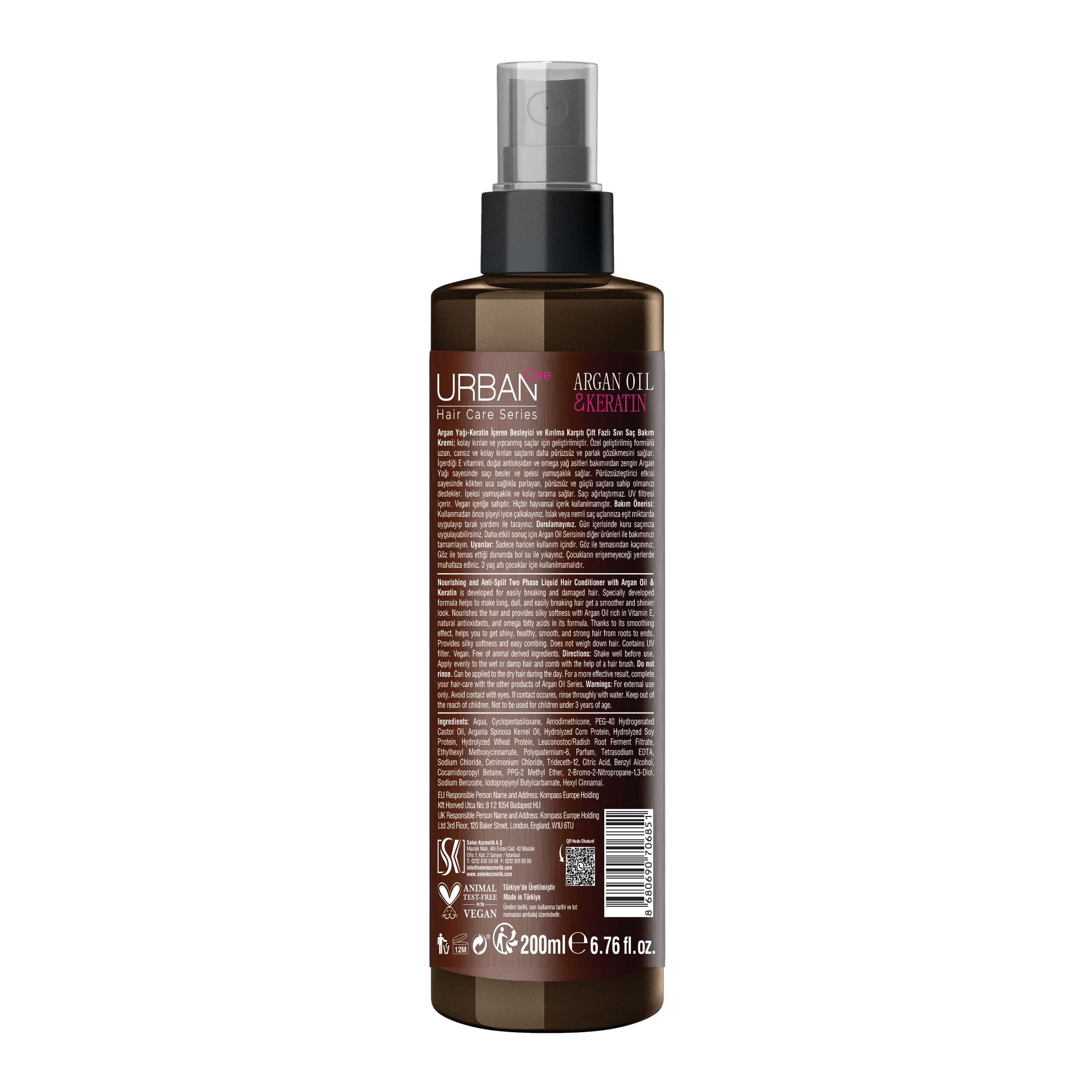 URBAN Care Argan Yağı & Keratin Kolay Kırılan Saçlara Özel Sıvı Saç Bakım Kremi 200 ml Etken Maddeleri Nelerdir?