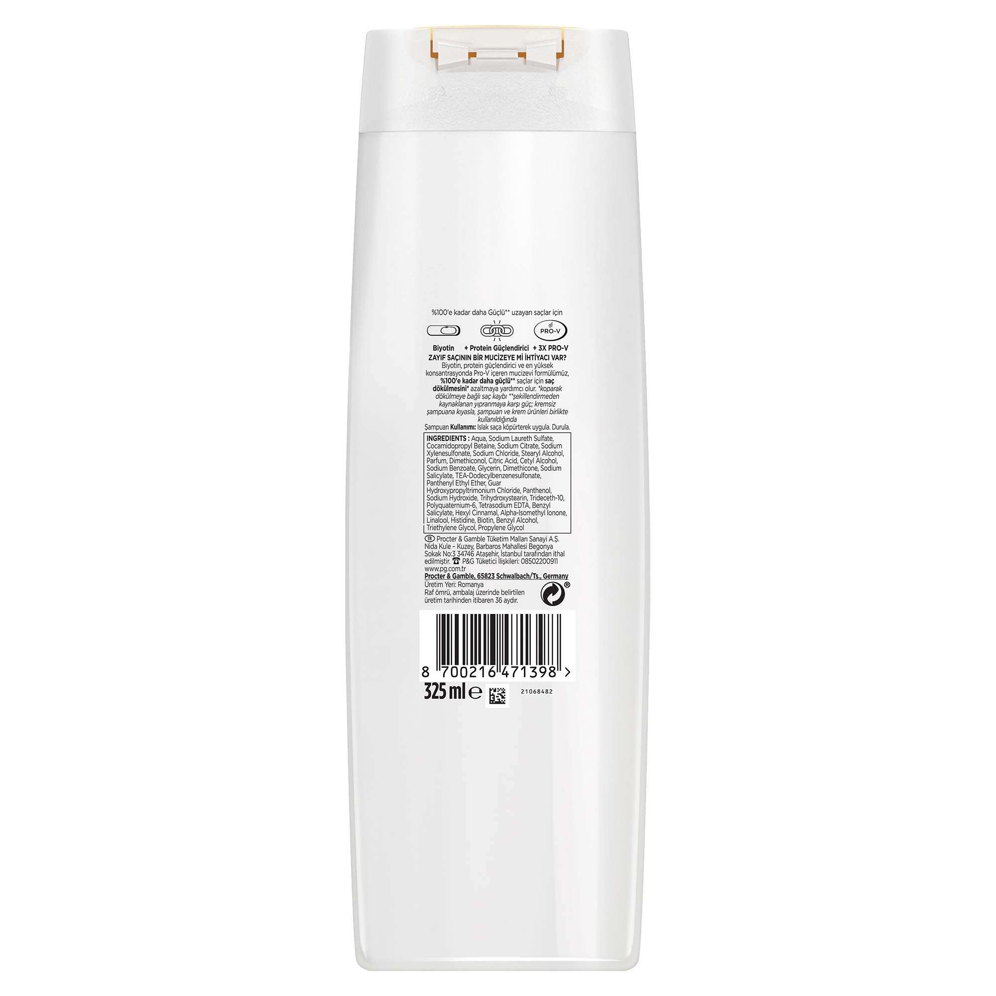 Pantene Pro-V Miracles Uzun ve Güçlü şampuan, koparak dökülmeleri azaltmaya ve saçların kökten uca güçlenmesine yardımcı olacak şekilde tasarlanmıştır (saç şekillendirme işlemlerinin neden olduğu yıpranmalara karşı güçlendirir). Özel besleyici maddelerle zenginleştirilmiş formülümüzün içerisinde biyotin, protein güçlendirici ve aktif Pro-V içeriği bulunur. Kolay kırılan kuru ve yıpranmış saçlar için. En iyi sonuç için günlük kullanıma uygun Pro-V Miracles Uzun ve Güçlü saç bakım rutinini (şampuan, saç kremi, durulanmayan krem ve onarıcı bakım) uygulayın.