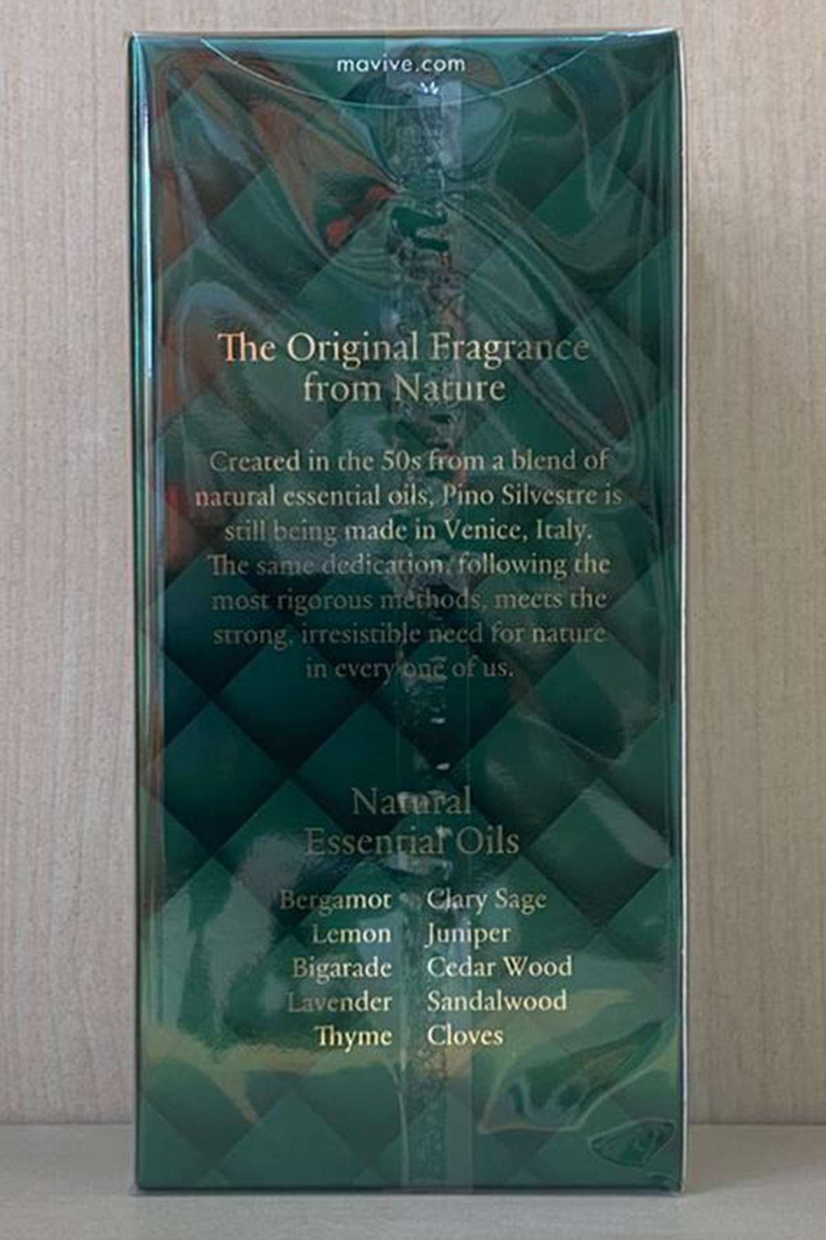 Alcohol desnaturalizado, Aqua [agua], Parfum [fragancia], acetato de linalilo, linalol, acetil cedreno, aceite de cáscara de Citrus aurantium, limoneno, aceite/extracto de lavándula, eugenol, aceite de Eugenia caryophyllus, hexametilindanopirano, beta-cariofileno, alcanfor, terpineol, citral, pineno, geraniol, BHT, acetato de geranilo, acetato de eugenilo, esclareol, alfa-terpineno, cumarina, terpinoleno, canona.
