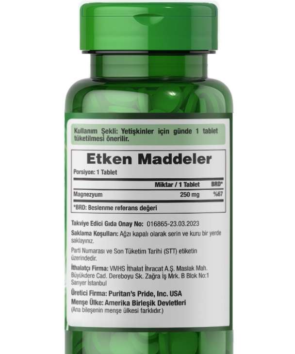 Puritan's Pride Magnezyum 250 Mg 100 Tablet Nedir?