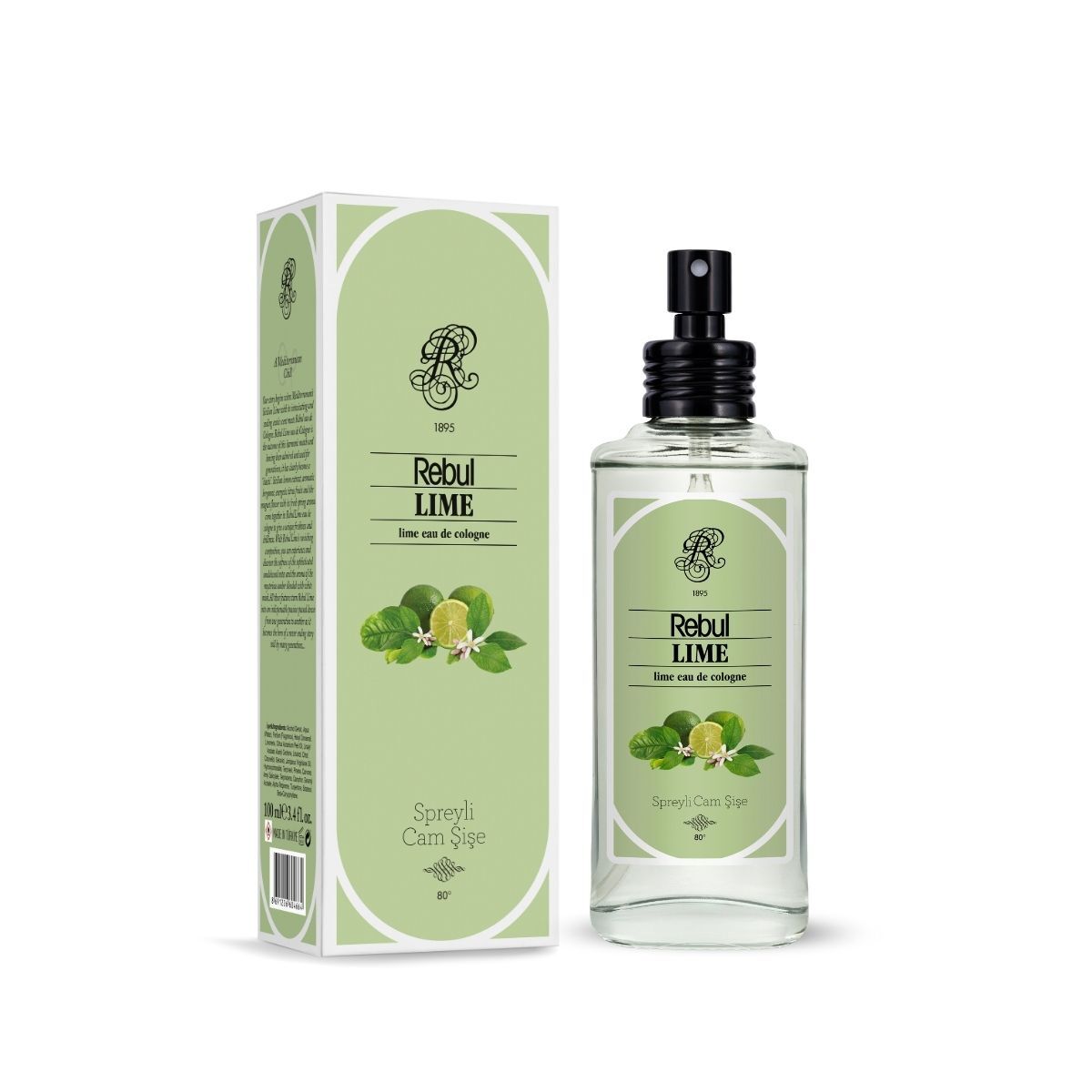 Rebul Lime Sprey 100 ml, Rebul’un klasik ve şık tasarıma sahip karton kutusu içerisinde, cam şişe ve kullanımı kolay sprey başlığı ile güvenli ve estetik şekilde paketlenmiş olarak tarafınıza ulaştırılır. Kolonya, günlük kullanım ve taşınabilirlik için kullanışlı boyuttadır.