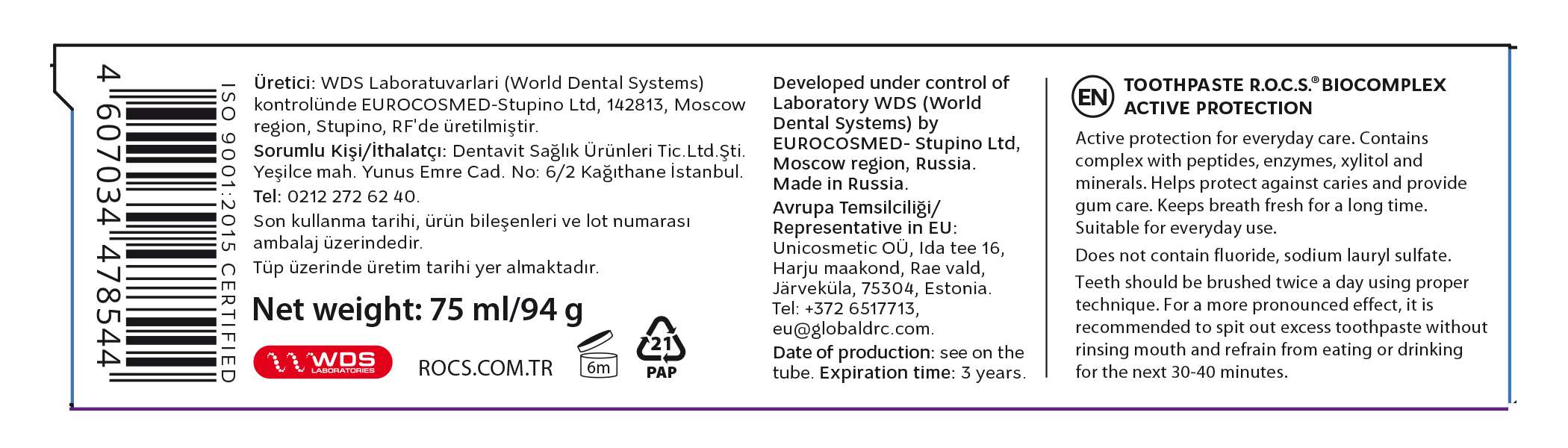 Rocs Bio Kompleks 360 Koruma Diş Macunu 75 ml Ürün Sunumu: