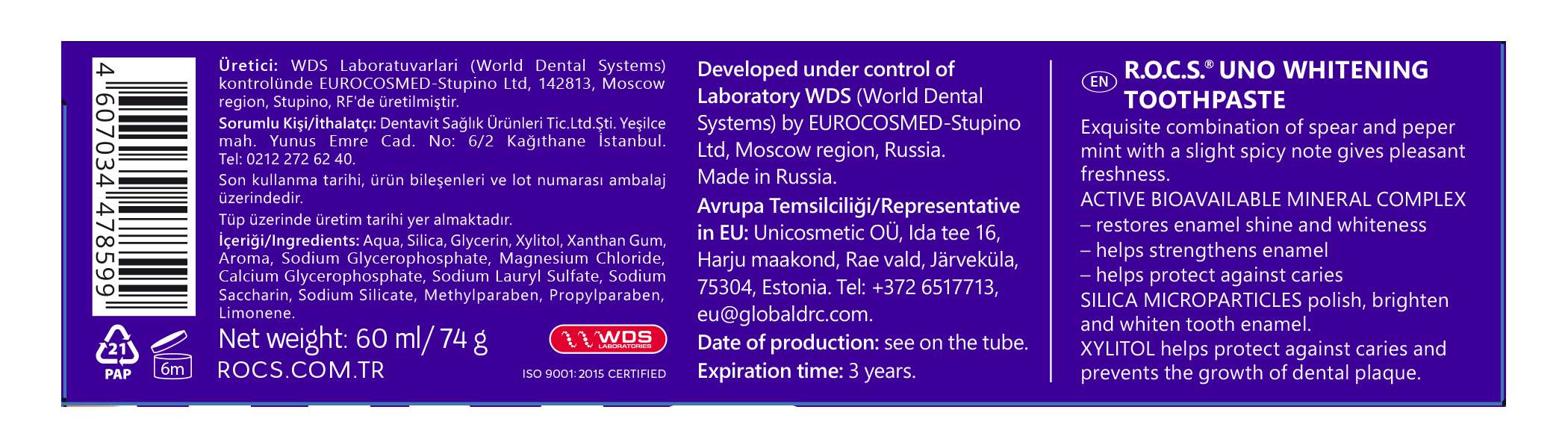 Aqua, Silica, Clycerin, Xylitol, Xanthan Gum, Aroma, Sodium Glycerophosphate, Magnesium Chloride, Calcium Glycerophosphate, Sodium Lauryl Sulfate, Sodium Saccharin, Sodium Silicate, Methylparaben, Propylparaben.