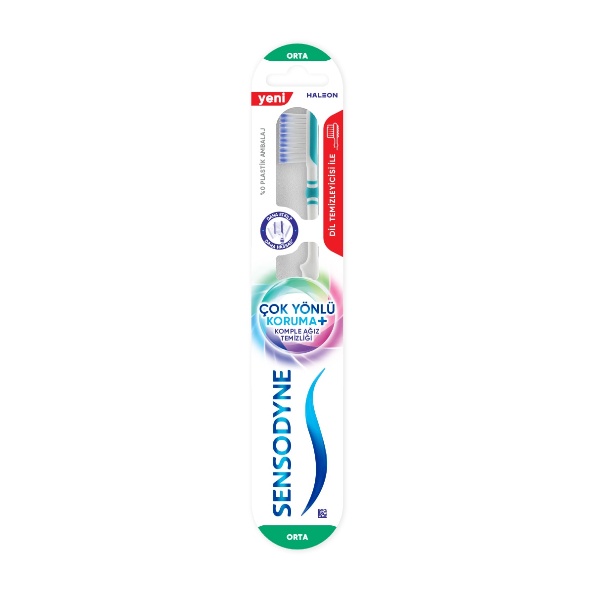 Sensodyne Çok Yönlü Koruma + Dil Temizleyicili diş fırçası, hassas dişler ve diş etleri düşünülerek tasarlanmış özel bir diş fırçasıdır. Günlük ağız bakımında dişlerin nazik bir şekilde temizlenmesine yardımcı olurken diş minesini koruyarak etkili temizlik sağlamayı hedefler. İnce ve yumuşak kılları sayesinde diş yüzeyini nazikçe temizleyerek ağız hijyeninin korunmasına destek olur.