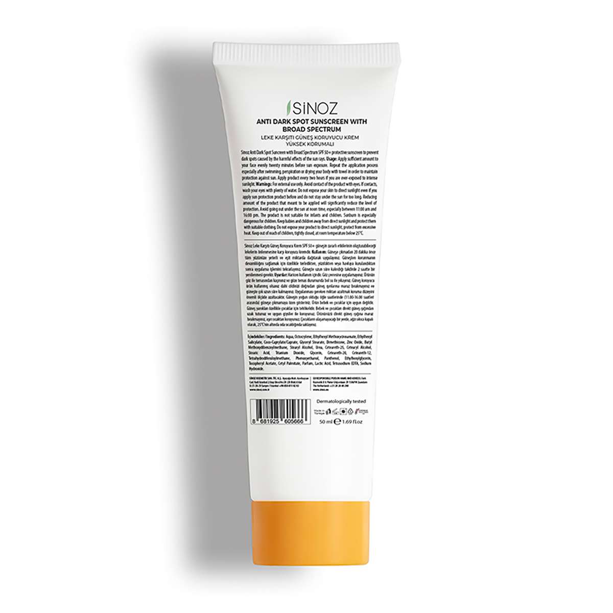 Sinoz SPF 50+ Leke Karşıtı Yüz Güneş Kremi 50ml