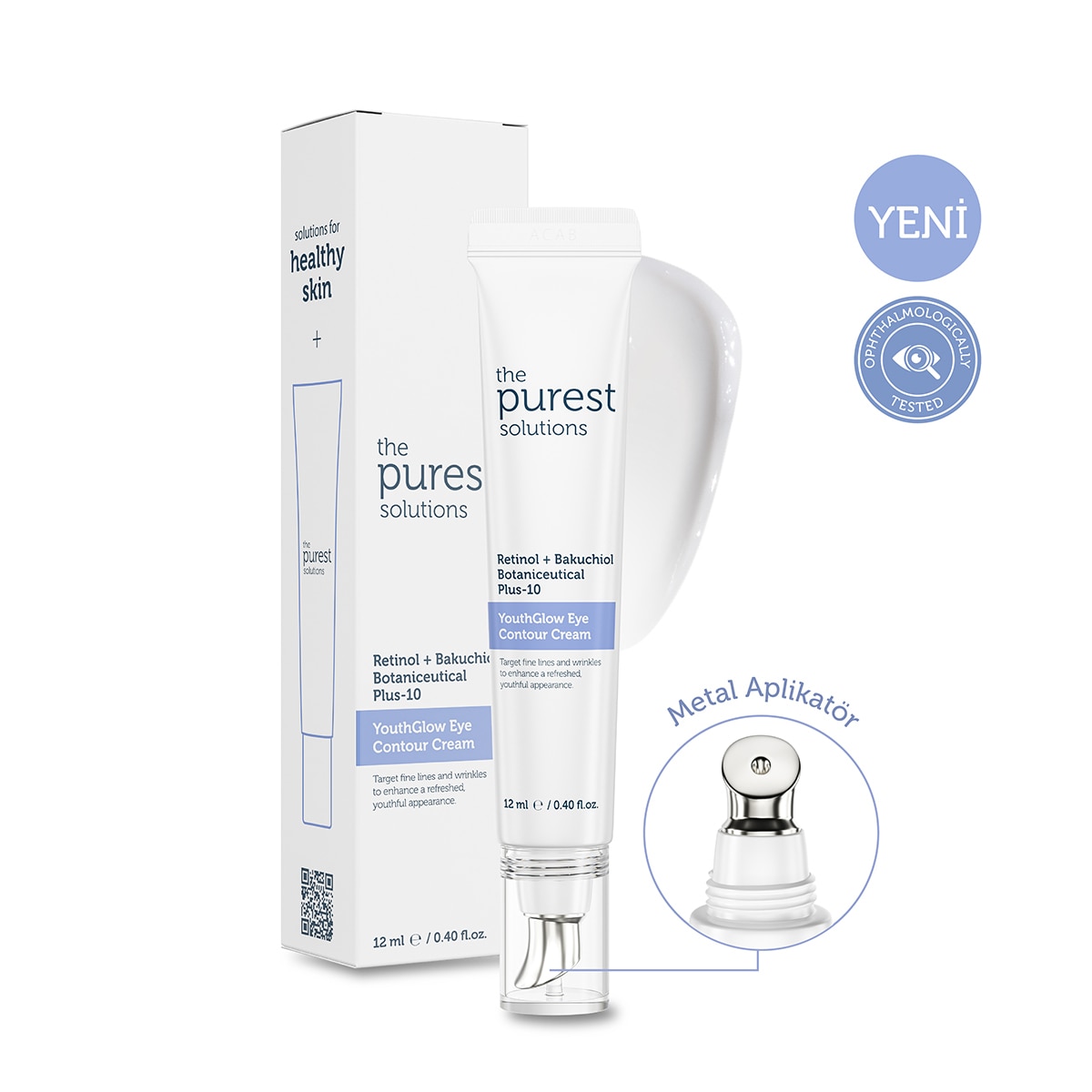 Ürün, 12 ml’lik tüp ambalajda sunulmaktadır. Soğutucu etkili metal aplikatör başlığa sahiptir.