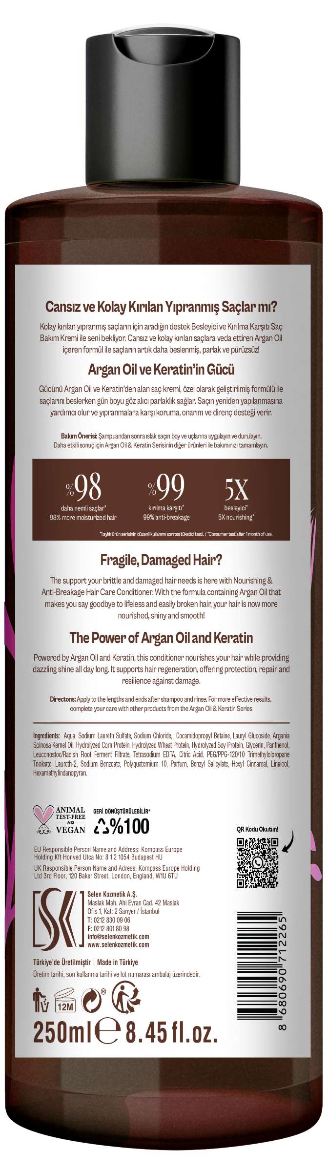 Şampuandan sonra ıslak saçın boy ve uçlarına uygulayın ve durulayın. Daha etkili sonuç için Argan Yağı & Keratin Serisinin diğer ürünleri ile bakımınızı tamamlayın.