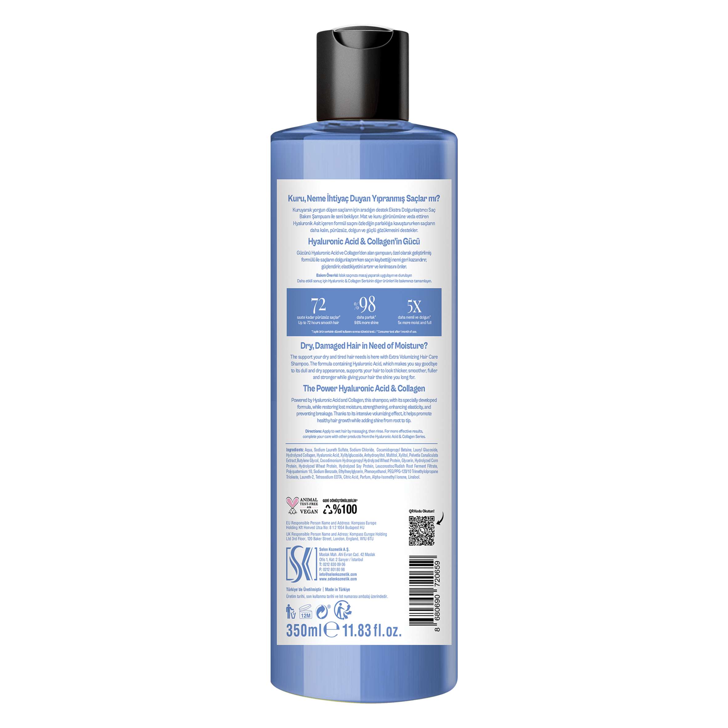 Islak saçınıza masaj yaparak uygulayın ve durulayın. Daha etkili sonuç için Hyaluronic & Collagen Serisinin diğer ürünleri ile bakımınızı tamamlayın.